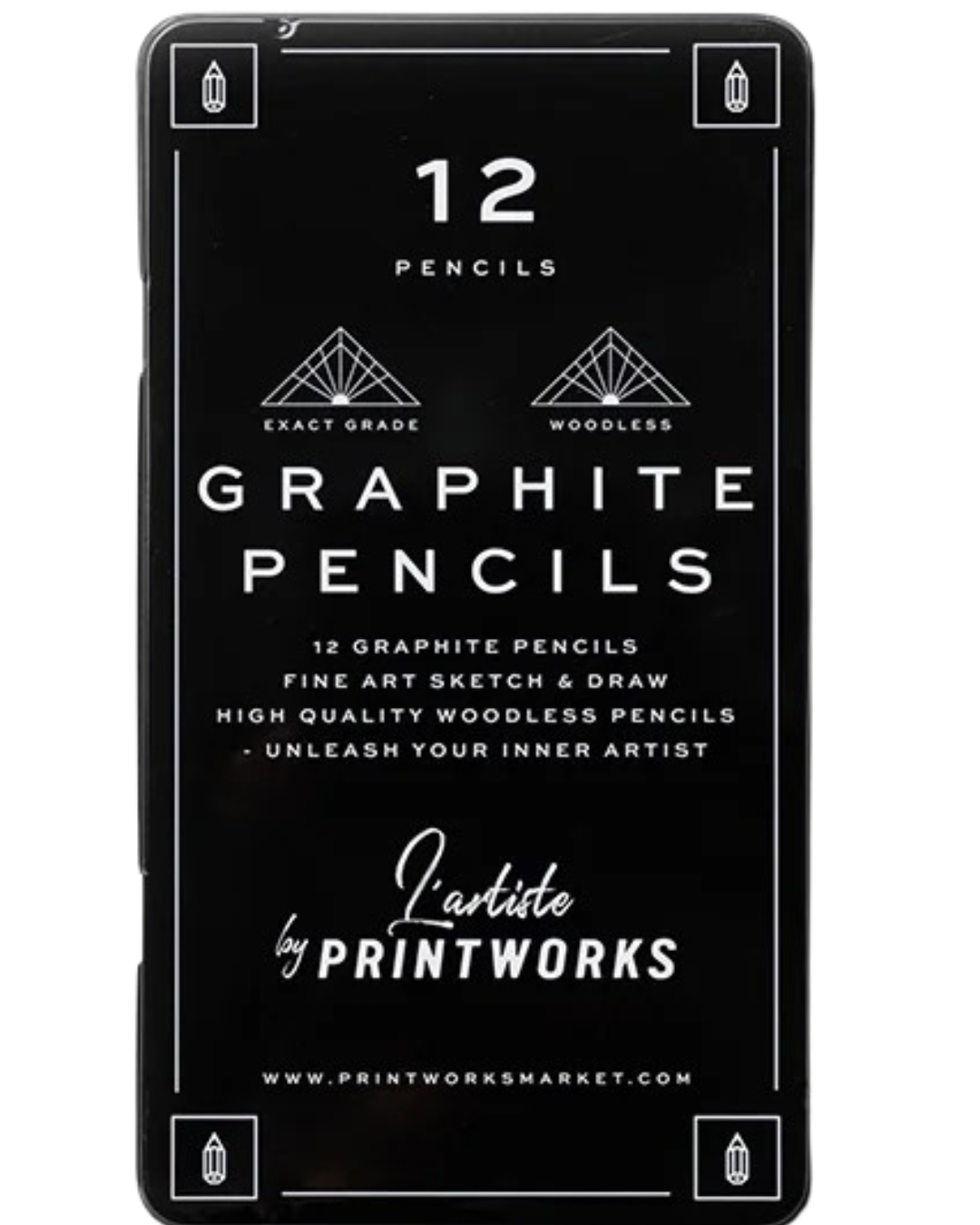 The set includes the following grades: 4H, 2H, H, HB, B, 2B, 3B, 4B, 6B, 8B, 10B, and 12B.