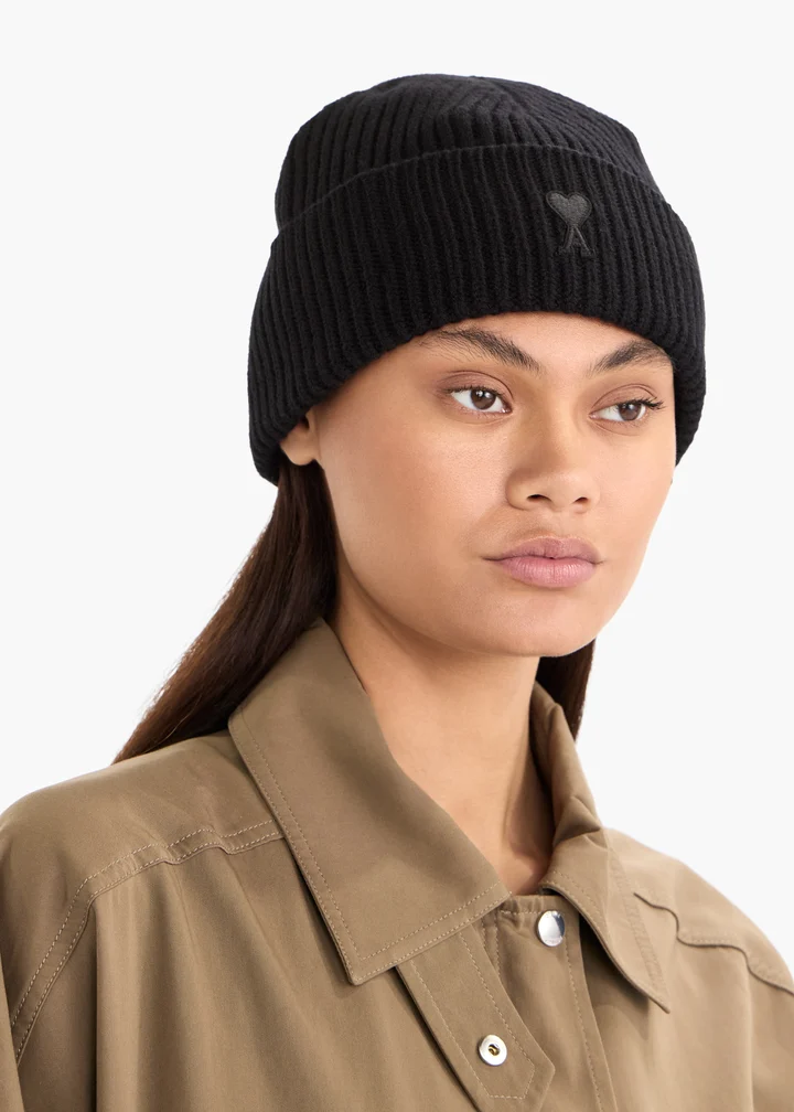 The AMI de Coeur beanie combines minimalist style with a high-quality finish made from 100% virgin wool. The classic ribbed knit design with turn-up is subtly accentuated by the iconic heart logo.
