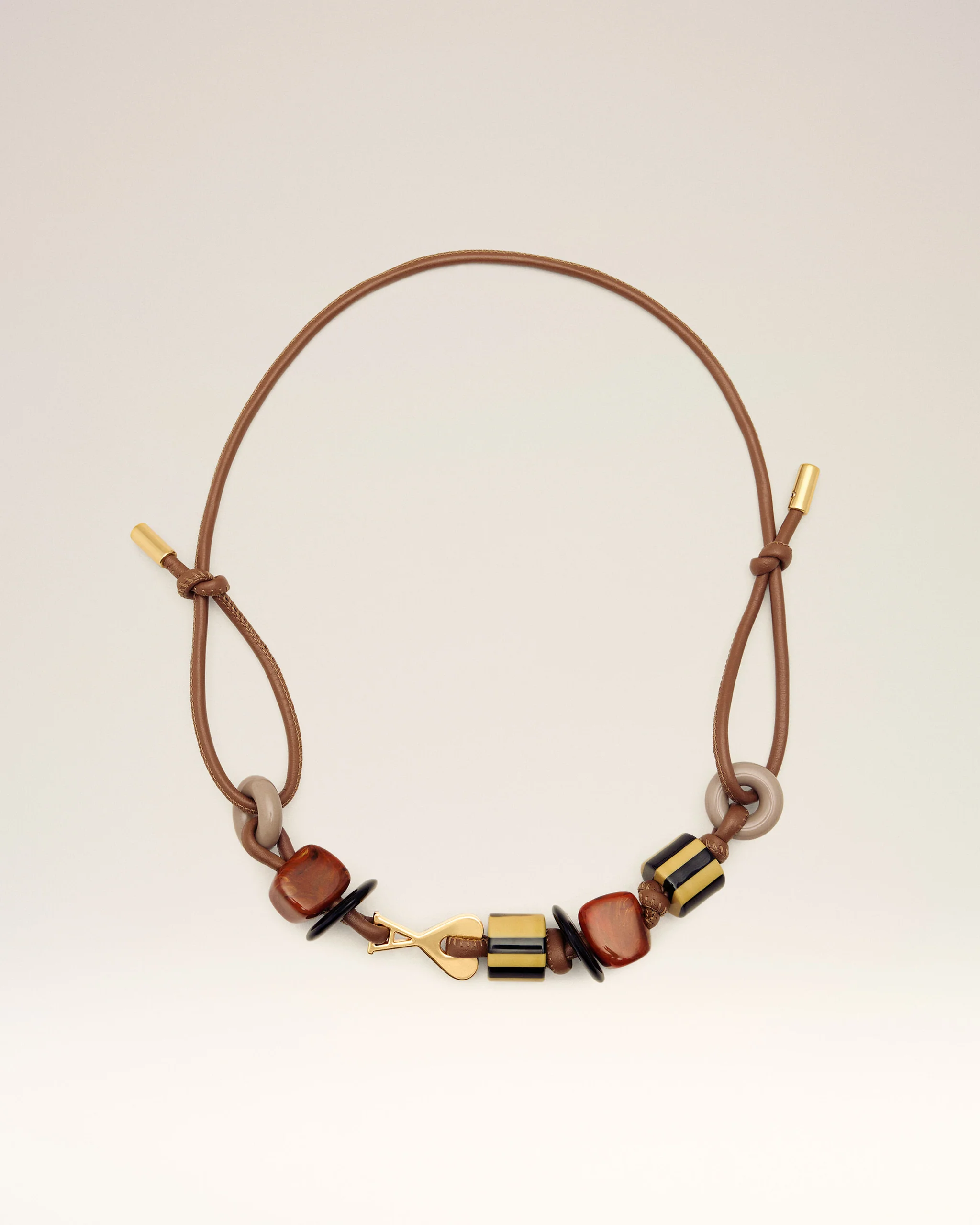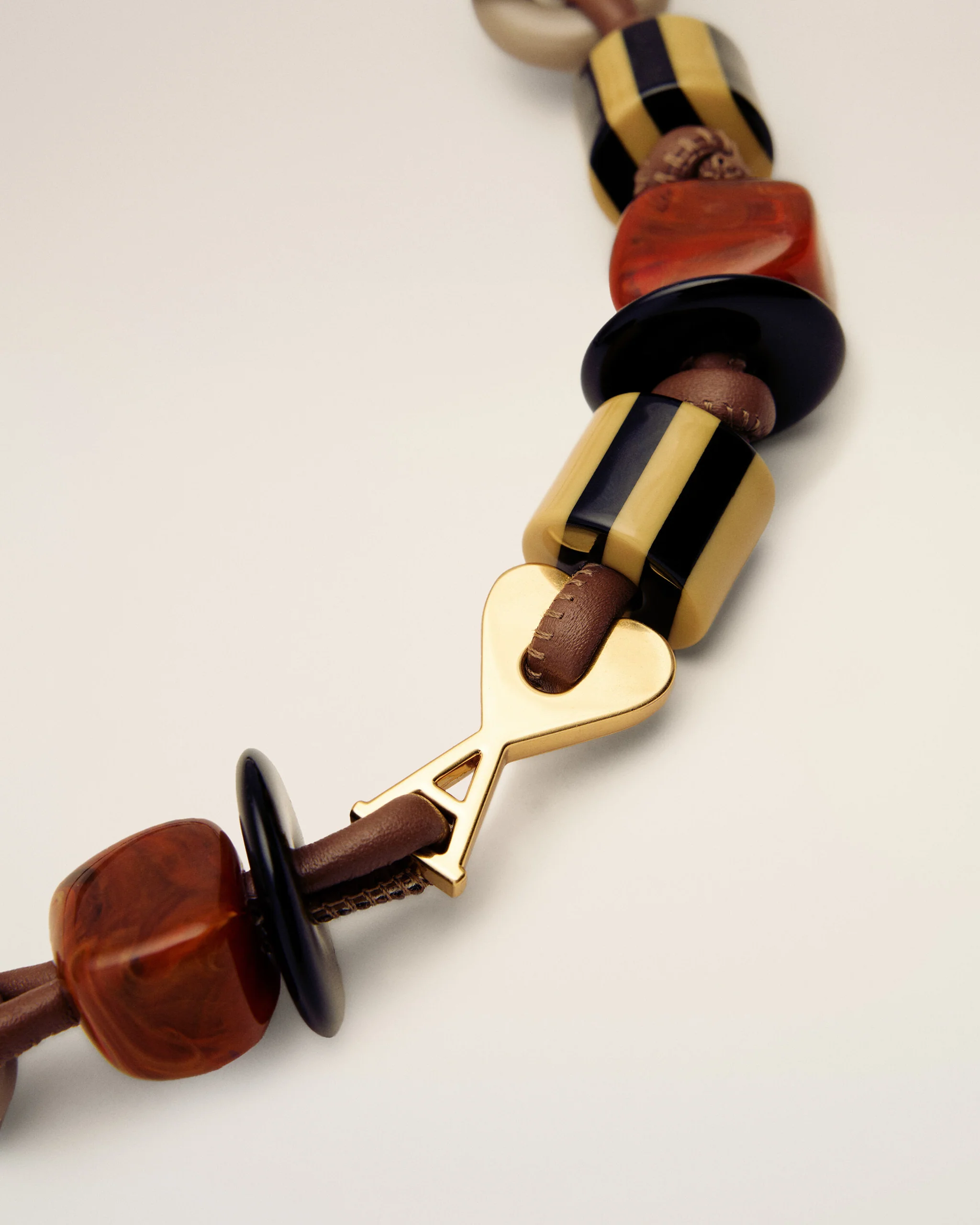 Ami de Coeur pearls necklace in smooth leather and metal.