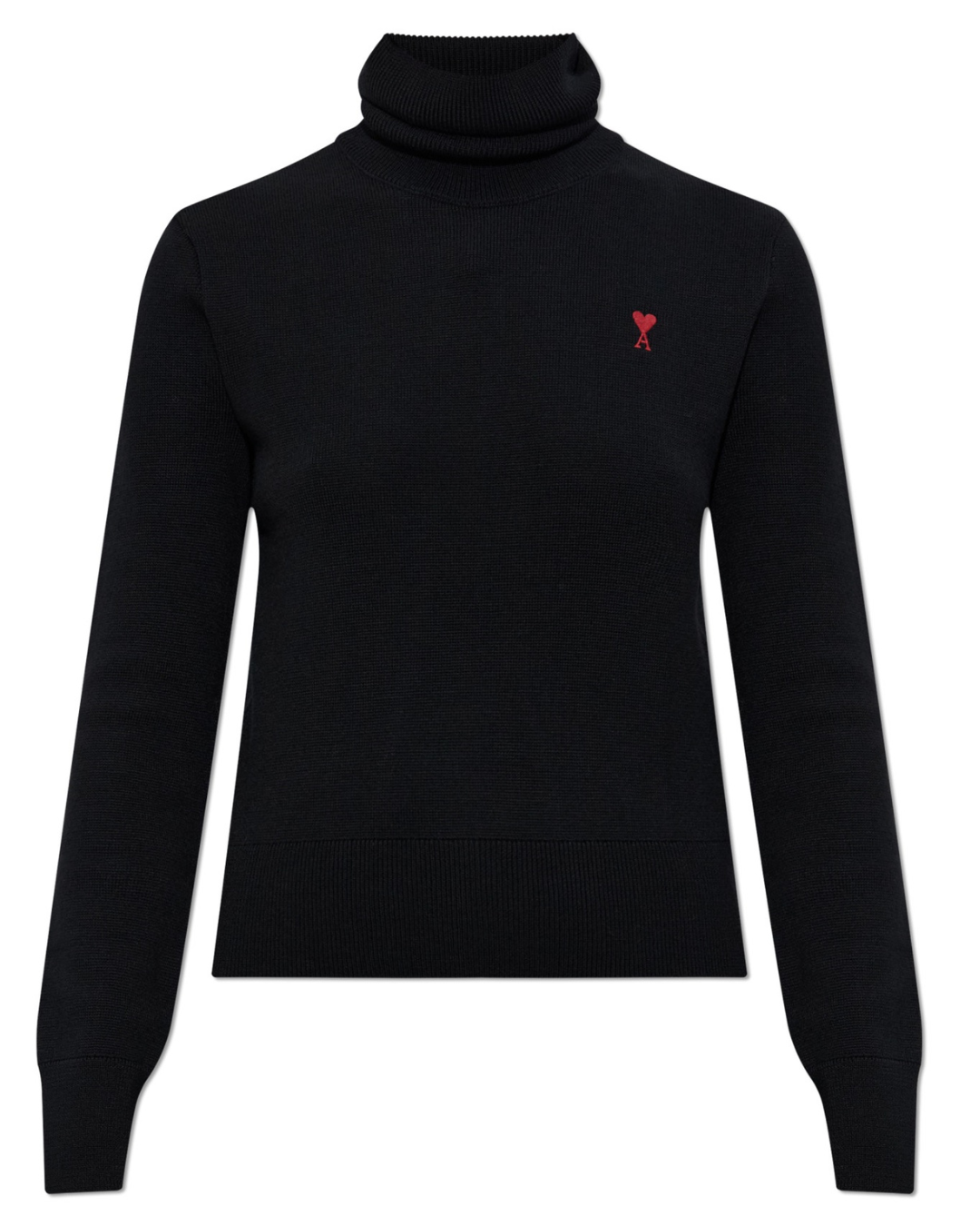 AMI ALEXANDRE MATTIUSSI BLACK WOOL TURTLENECK WITH EMBROIDERED LOGO
