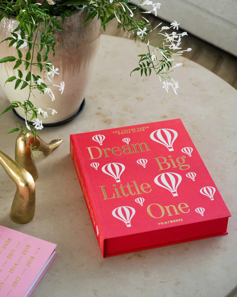 Capture and cherish your baby’s first years with our charming coffee table photo album Dream Big Little One, featuring a cerise cloth cover with gold foil text and silkscreen balloon prints.