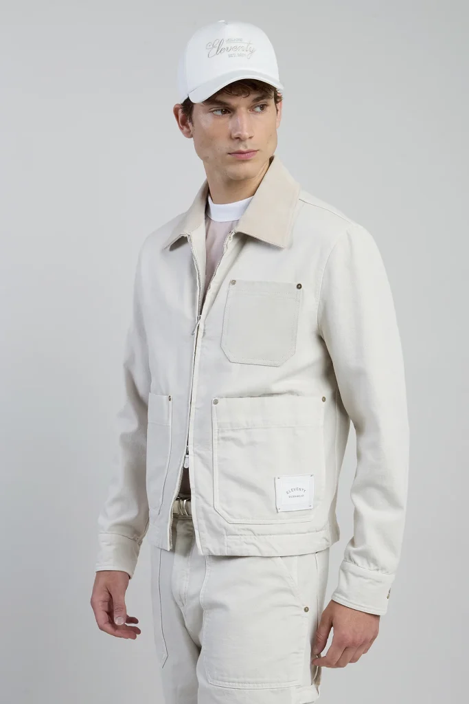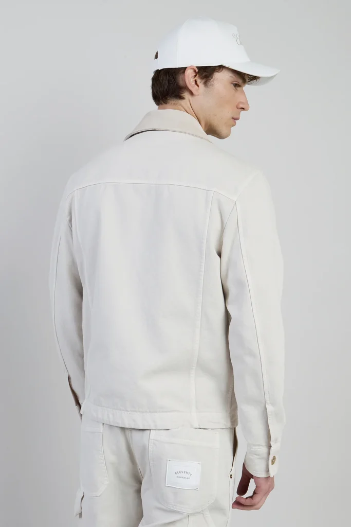 Rugged utility meets refined craftsmanship in this dual-material jacket crafted from garment-dyed cotton with premium crust leather inserts. Drawing inspiration from the iconic denim jacket, this workwear-inspired outerwear offers a regular fit that ensures comfort and versatility. The specialized dyeing technique creates unique color nuances near the seams, providing a distinctive worn appearance and a sophisticated vintage feel. Featuring functional pockets and a structured collar, the men’s cotton jacket balances durability with a soft tactile experience. It represents a modern evolution of classic silhouettes, perfect for those seeking a practical yet polished addition to their seasonal wardrobe.