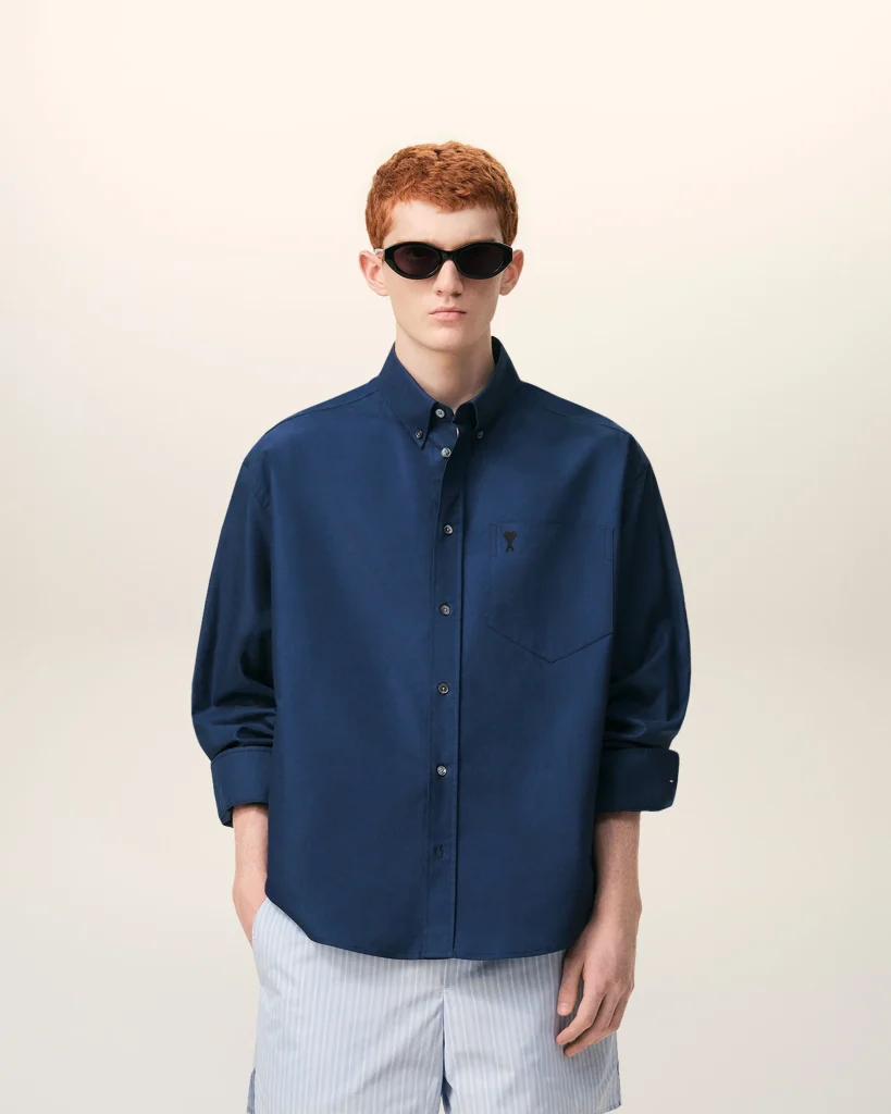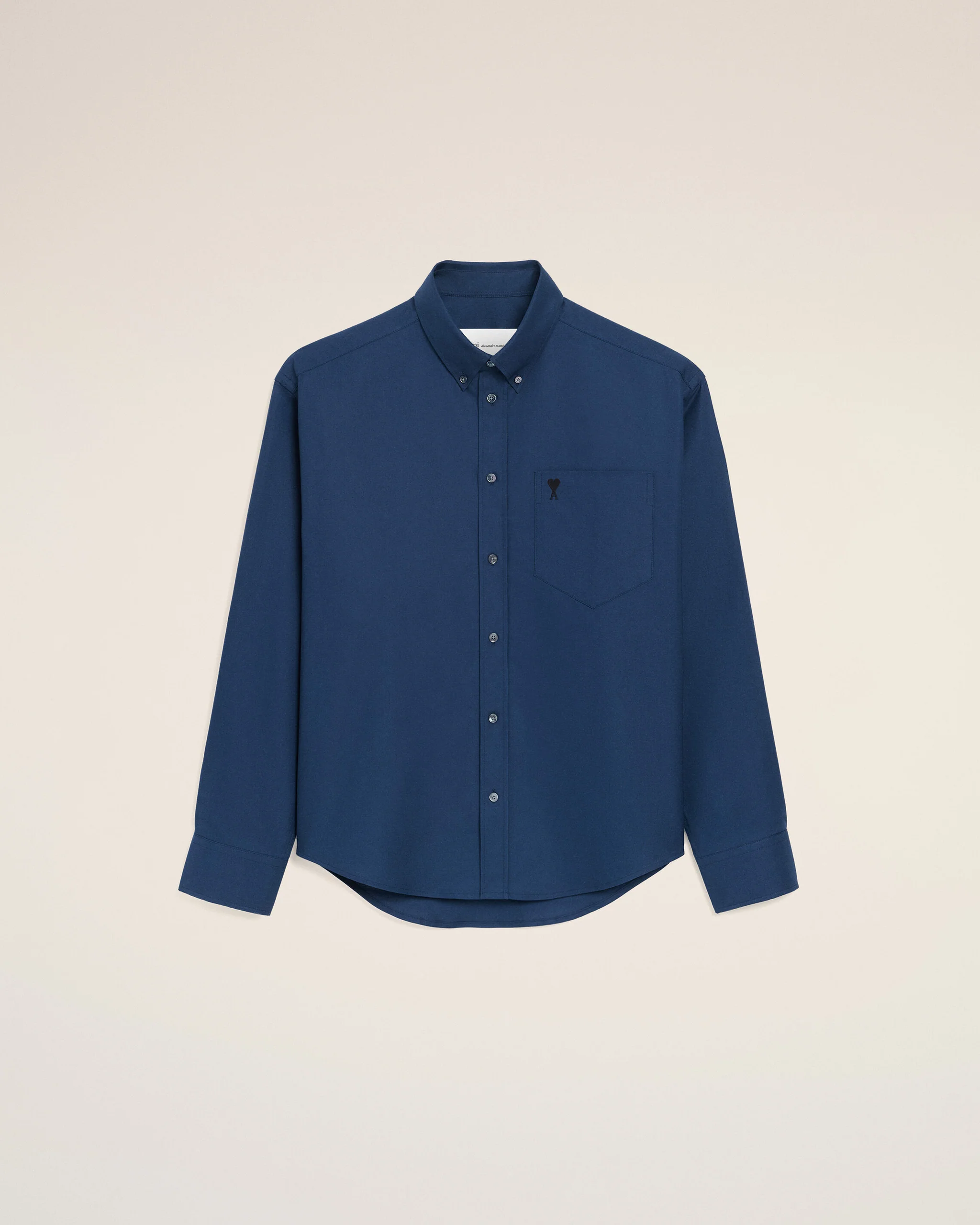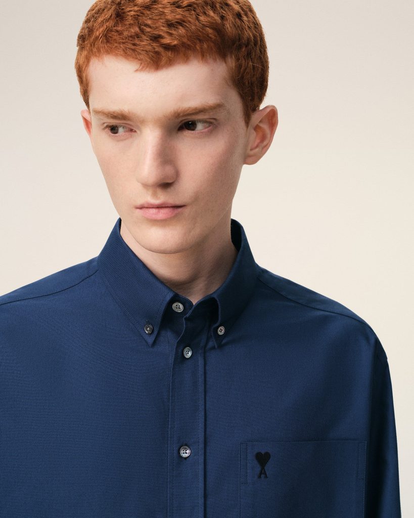 BLUE COTTON BOXY EMBROIDERED AMI DE COEUR SHIRT