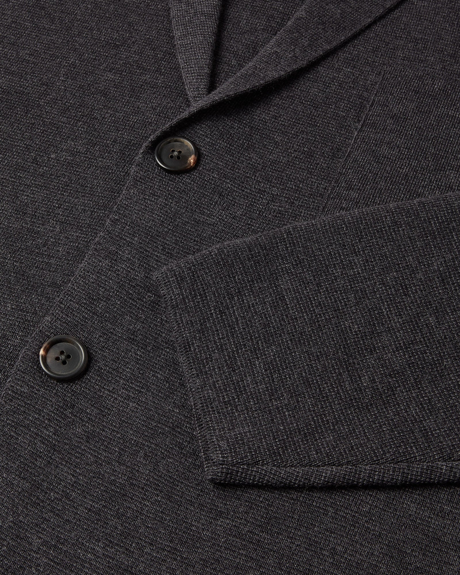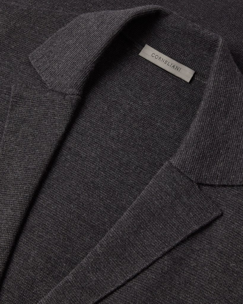 The Corneliani Roma Stitch Knitted Blazer in Charcoal offers a masterful blend of elegance and craftsmanship.