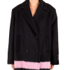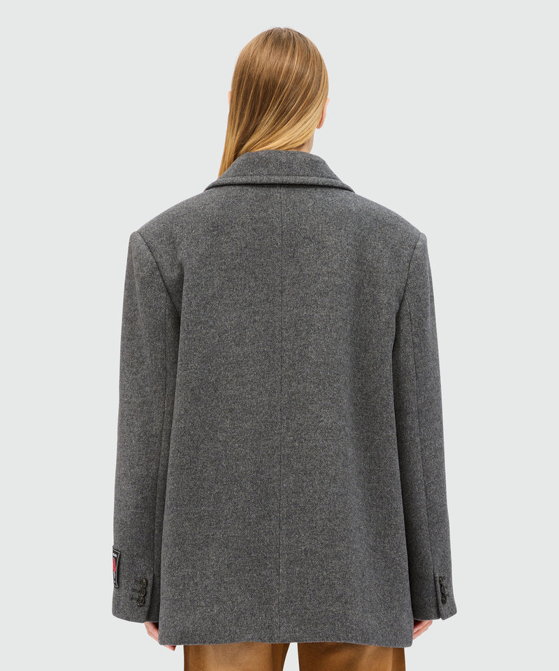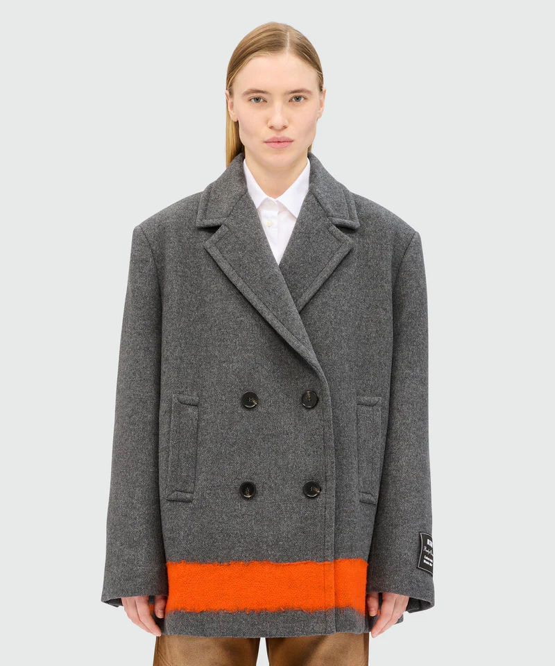 Anthracite double-breasted coat in wool cloth with contrasting band
