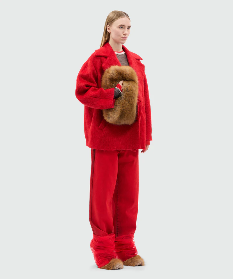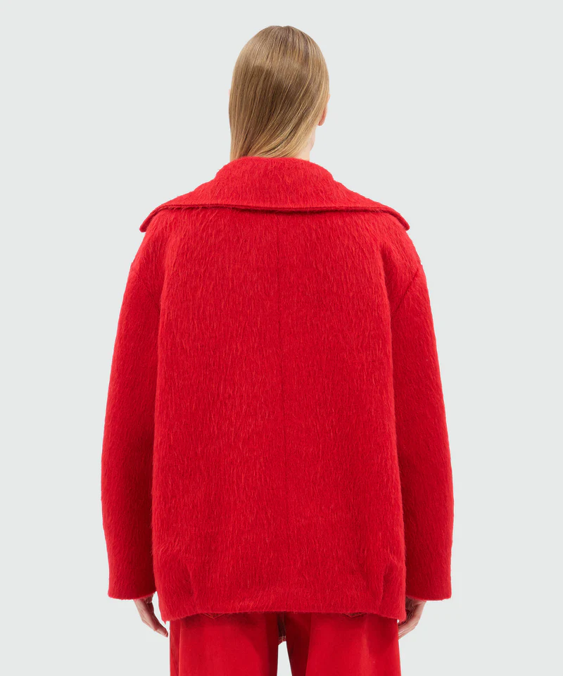 Short double-breasted coat in red brushed wool felt