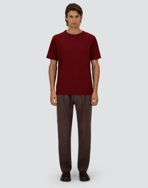 Trousers made of a compact, soft and precious blend of cotton and lycra fabric. The combed yarns are treated with a special finishing cycle that guarantees a perfect fit.