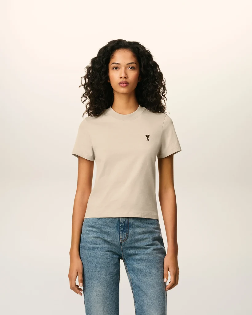 BEIGE COTTON CROPPED AMI DE COEUR T-SHIRT