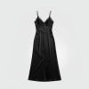 Satin midi dress with deep armholes and a tie sash at the neck and waist to create a pareo effect.The model is wearing a size S/40.