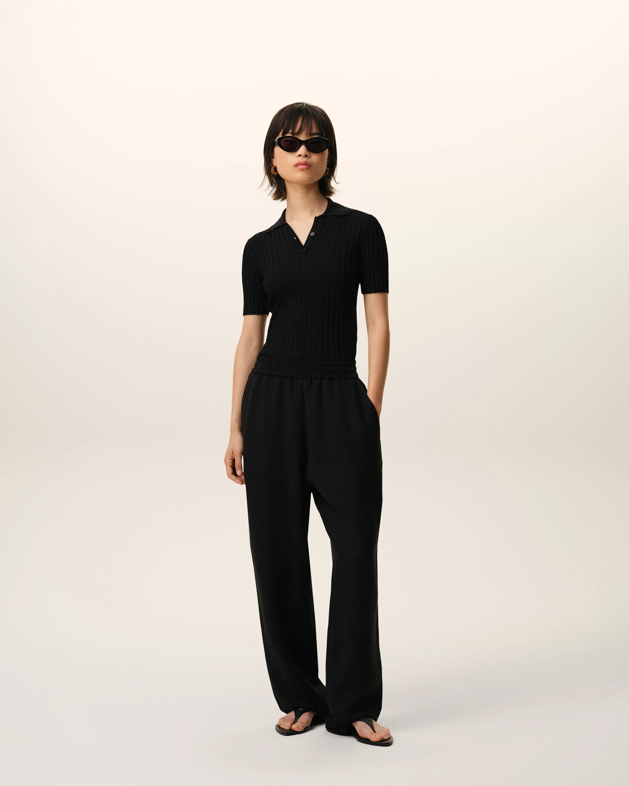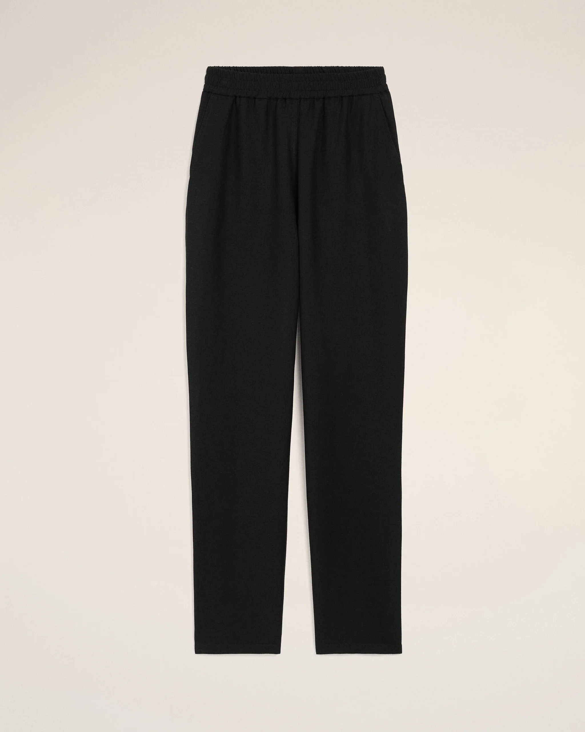 Elasticated waist trousers in viscose and linen gabardine.