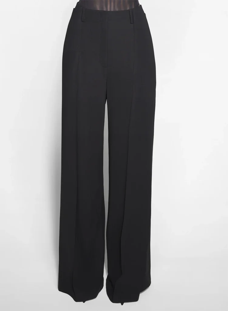 – wide legs with pressed creases