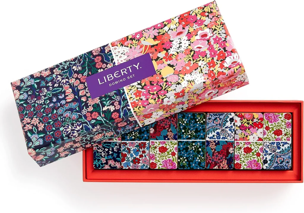 The Liberty Floral Wood Domino Set from Galison includes 28 double sided wood dominoes with Liberty’s iconic floral patterns for a twist to the classic game. Great addition to game night!
