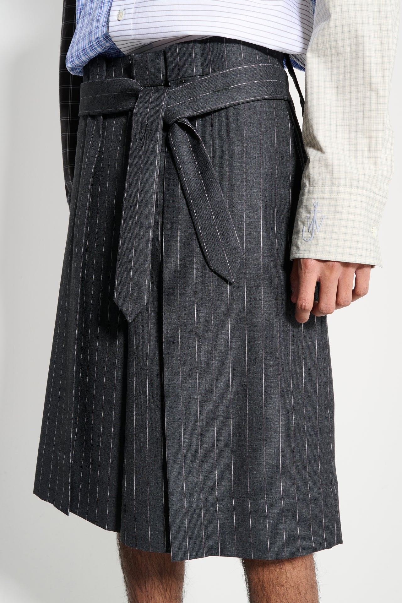 JW ANDERSON FOLDED FRONT PLEAT SHORTS MID GREY MELANGE