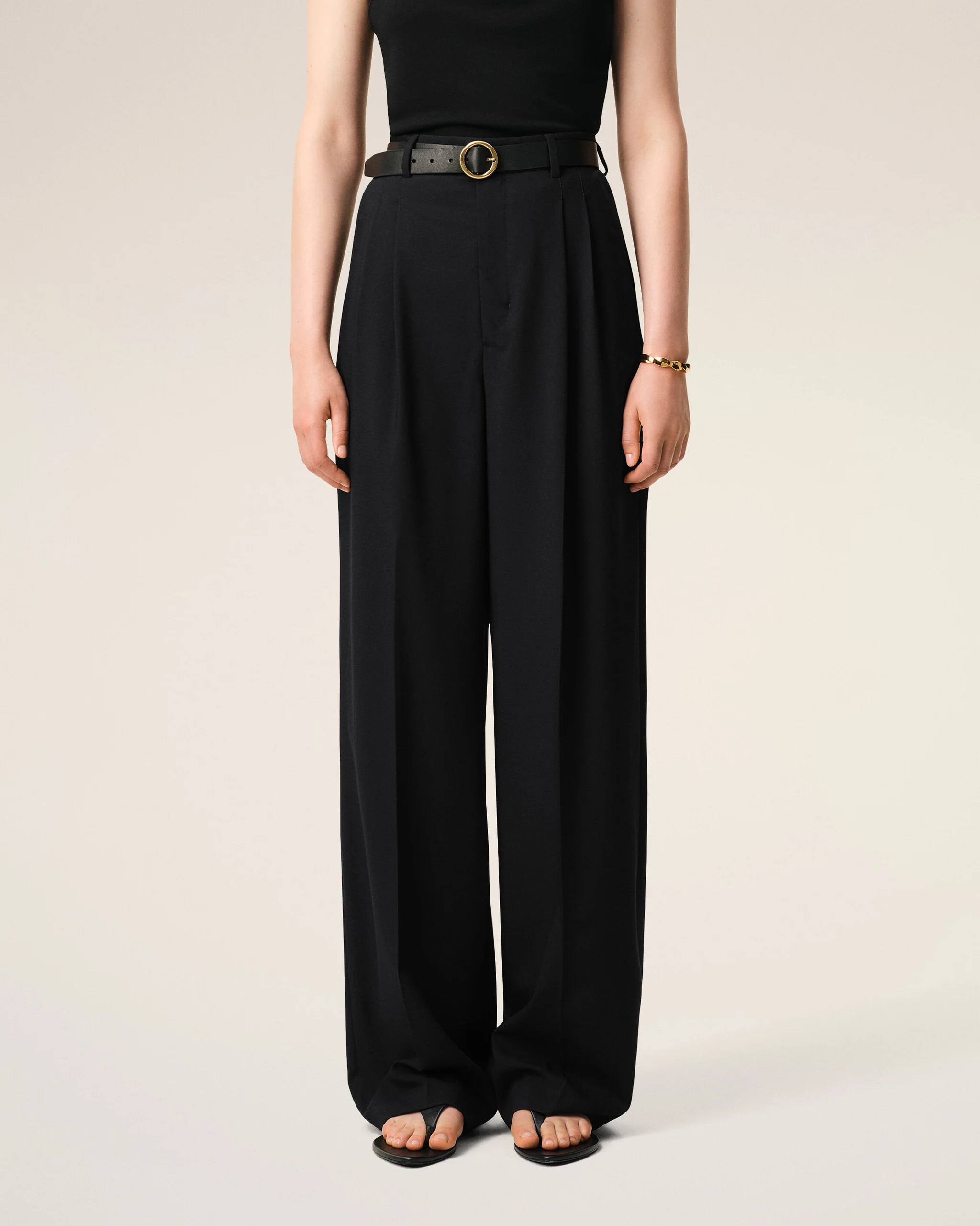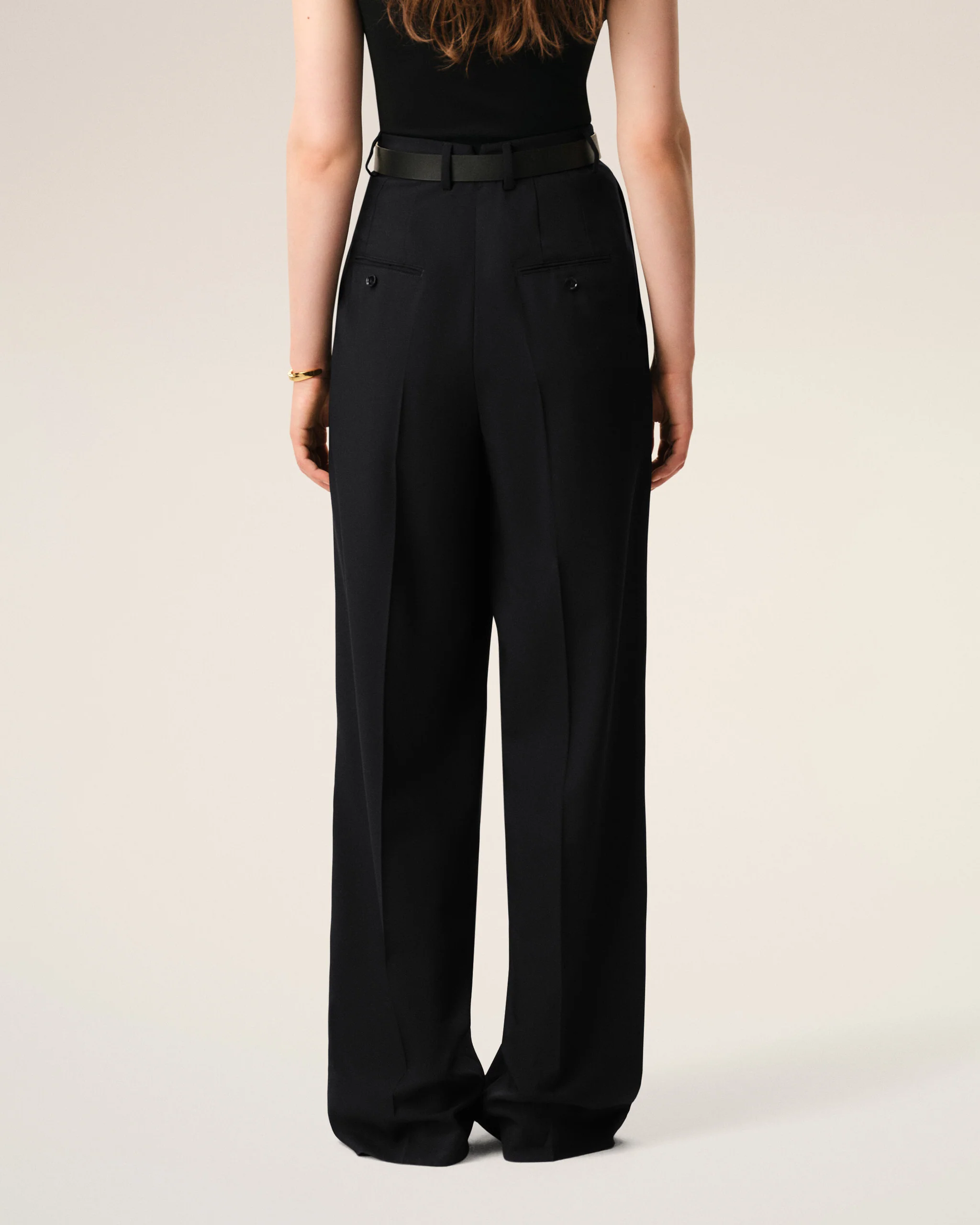 High waist two pleats wide trousers in wool gabardine.