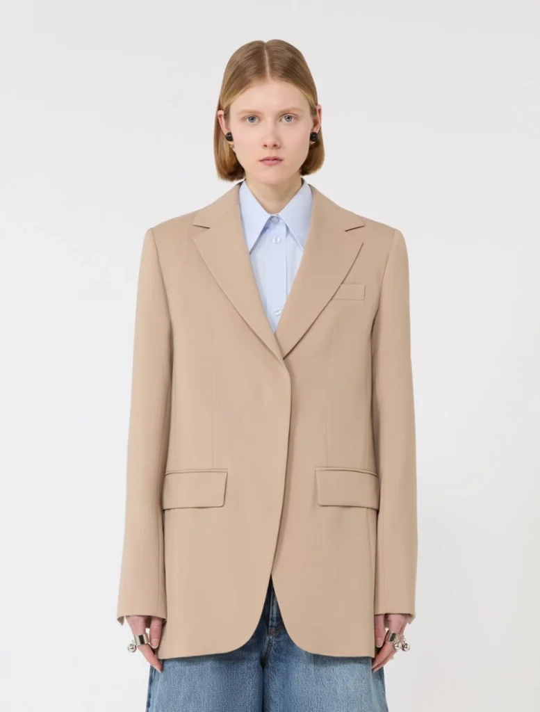 Fabric 55% virgin wool, 45% polyester; lining 70% acetate, 30% polyester; sleeves lining 97% viscose, 3% acetate.