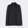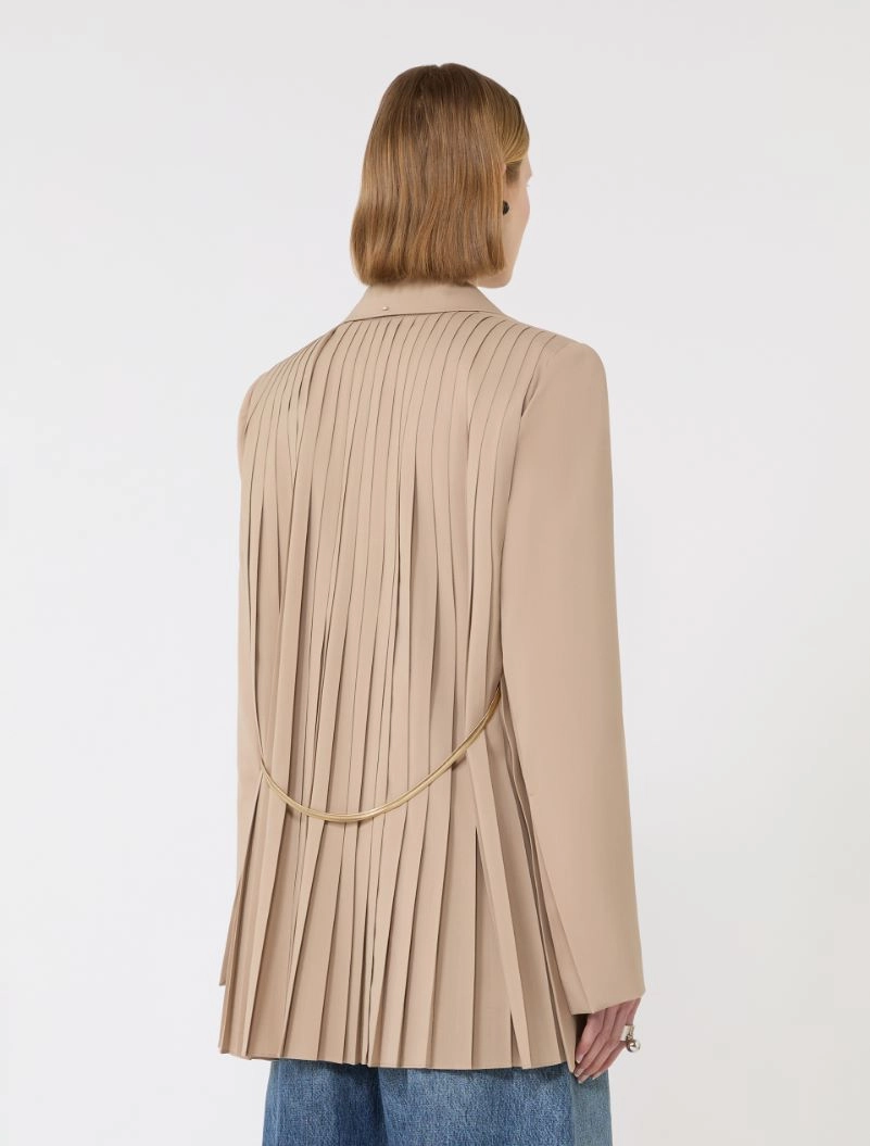 Blazer with a tailored construction, concealed buttoning and a slightly cut-away line to the hem. The pleated back is accented by a sleek metal chain belt, which can be removed for personalised styling.