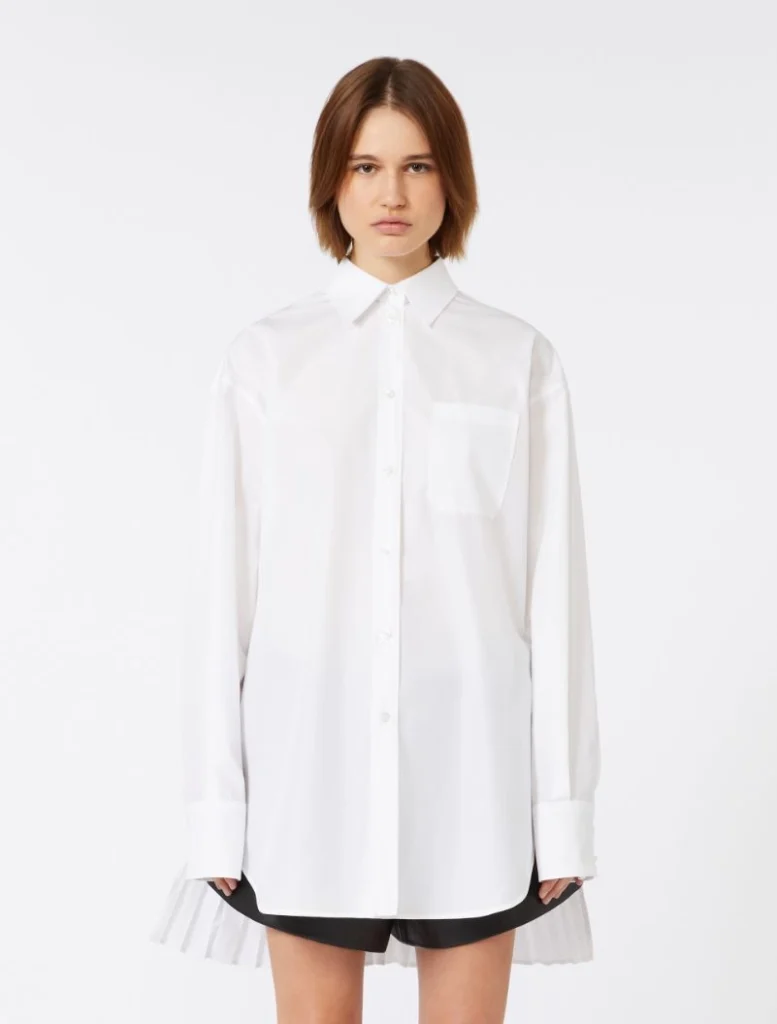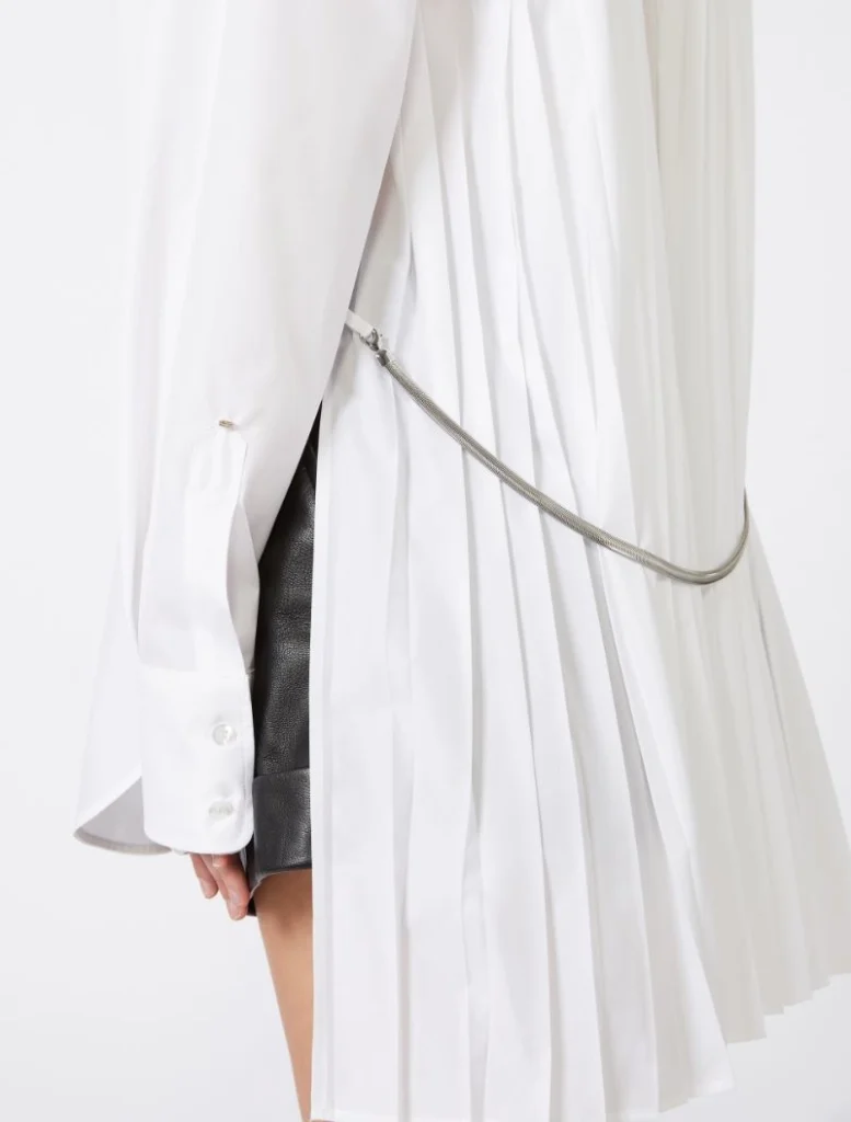 Overshirt in cotton-blend canvas, featuring menswear-inspired lines and a breast pocket. The back is crafted with pleats, with a removable metal chain attached to the sides.