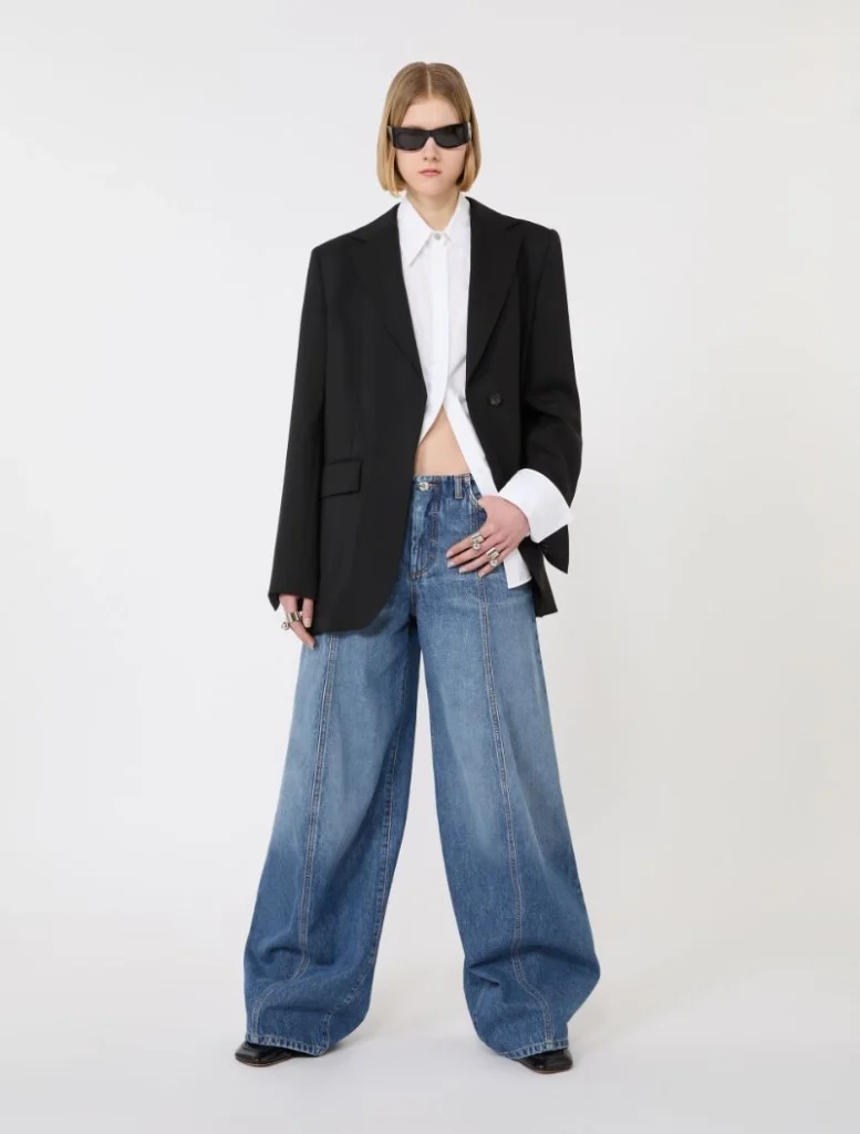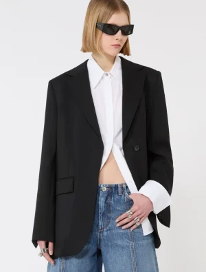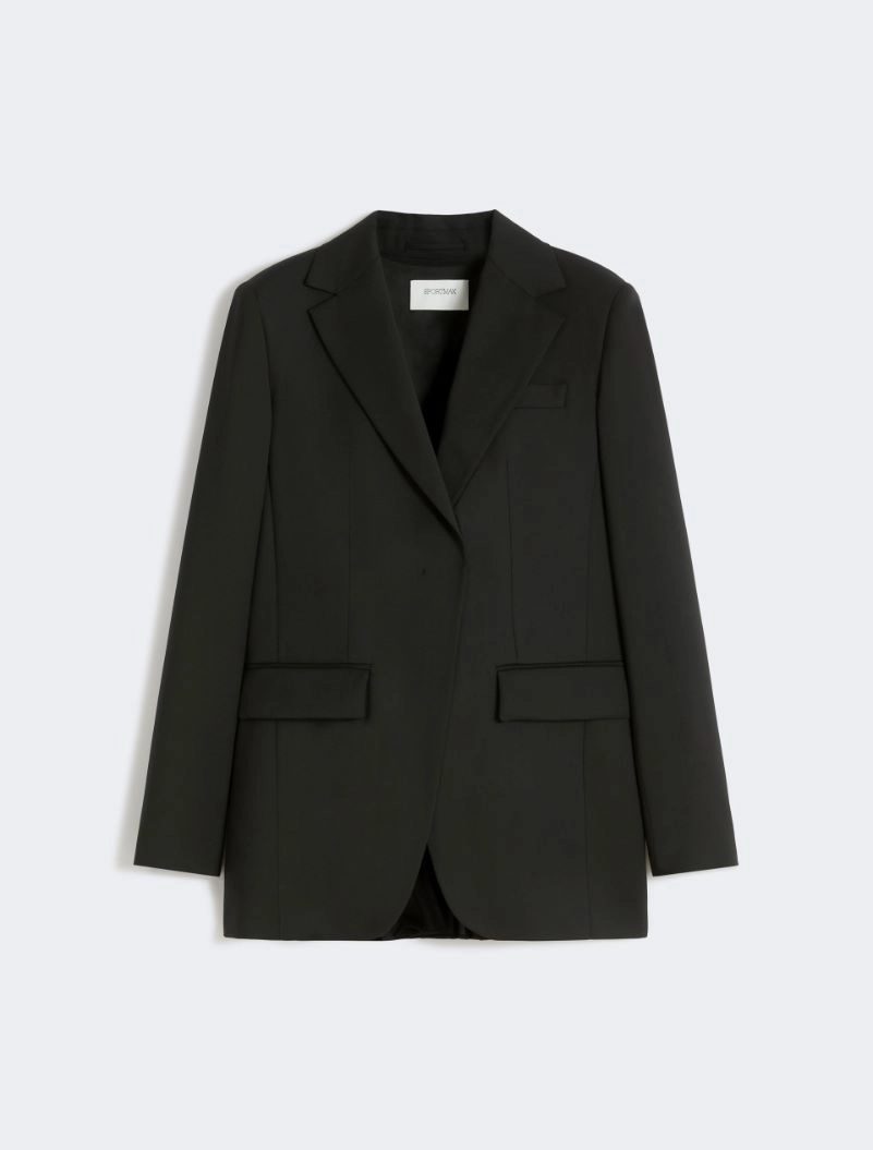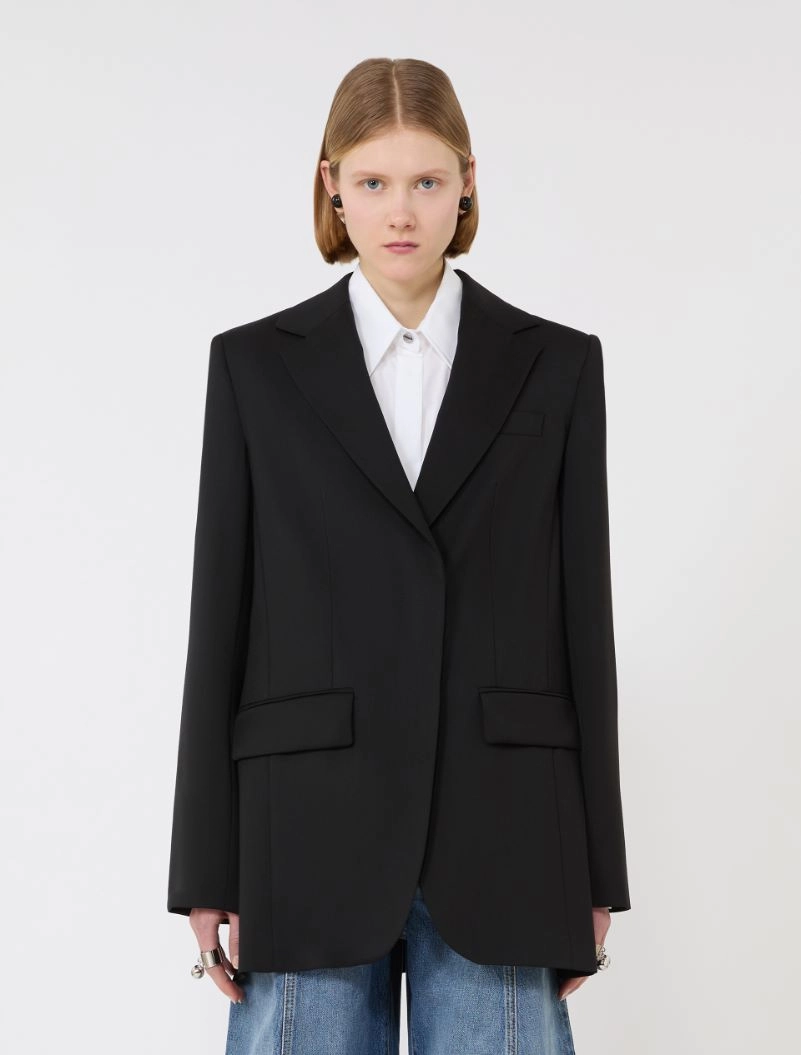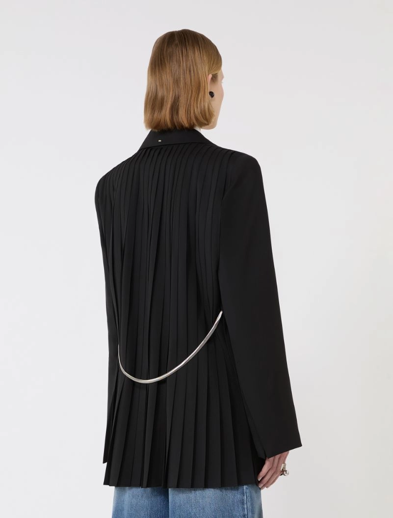 Tailored wool blazer with pleated back – black