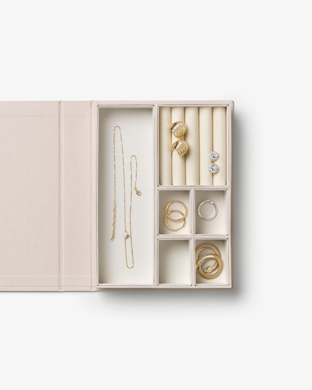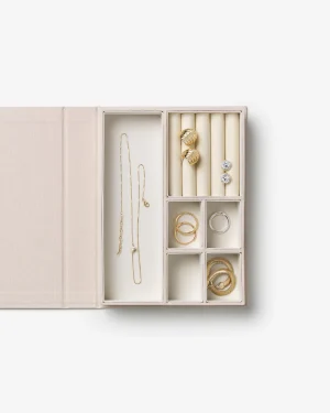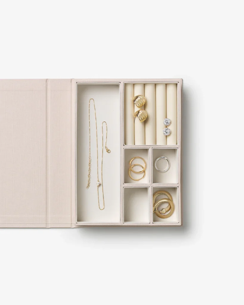 Discover our A Girl’s Best Friend Jewelry Box in elegant beige – a timeless piece designed to hold your most cherished treasures. The box opens like a book, revealing a soft velvet interior with multiple compartments to organize rings, earrings, necklaces, and bracelets. Perfect for your vanity or nightstand, it keeps your jewelry beautifully displayed while adding a refined touch to your decor.