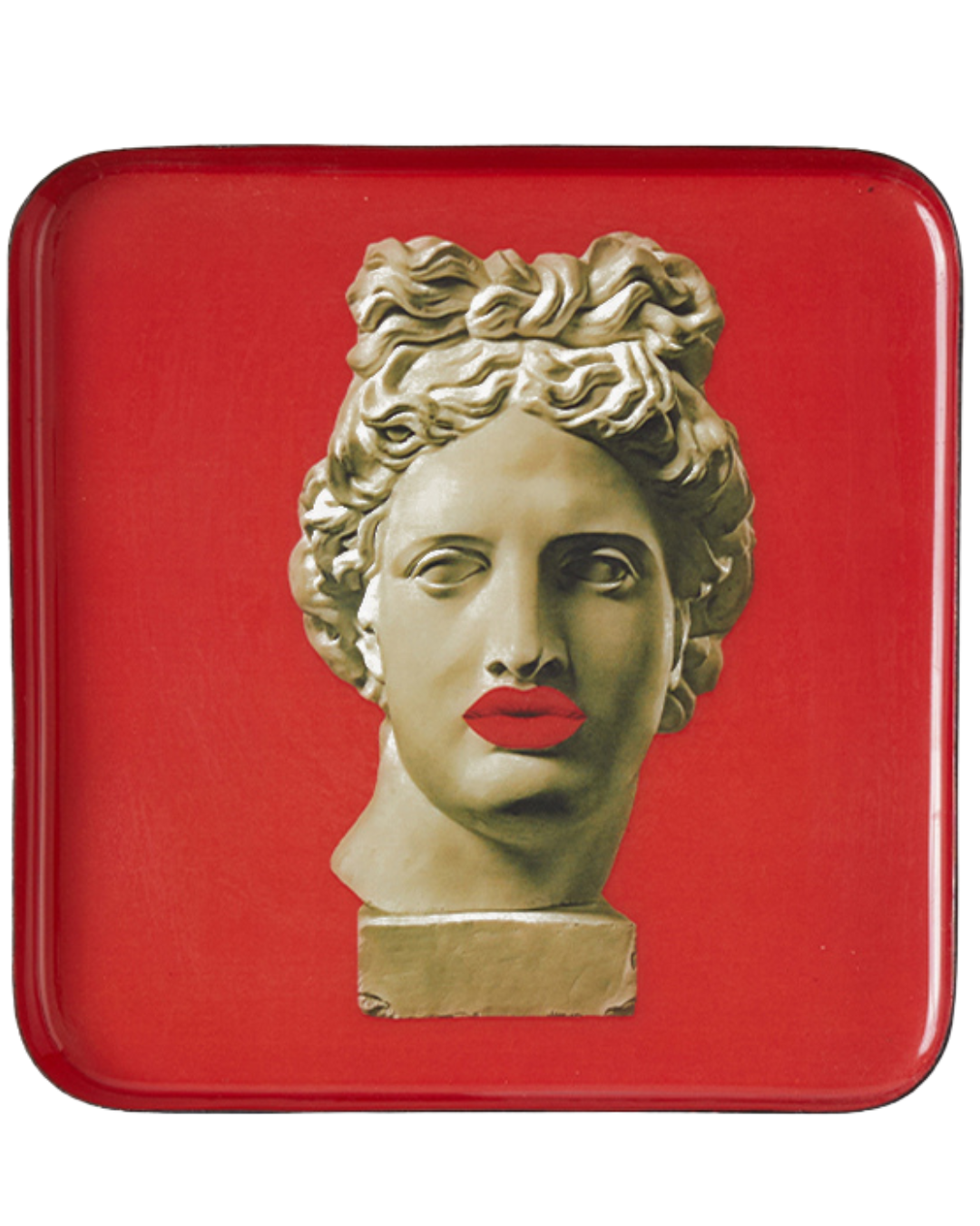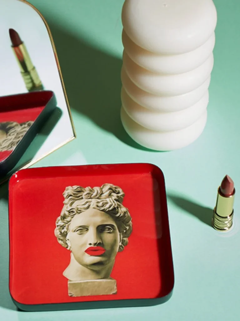 This stunning visage of Greek god Apollo, complete with luscious red lips could inspire even the most stoic artist! We get many fabulous pieces through the door, but Apollokiss made it into our own home because we love it so much! This tray is a statement piece that screams, “I’m divine, and I know it!”