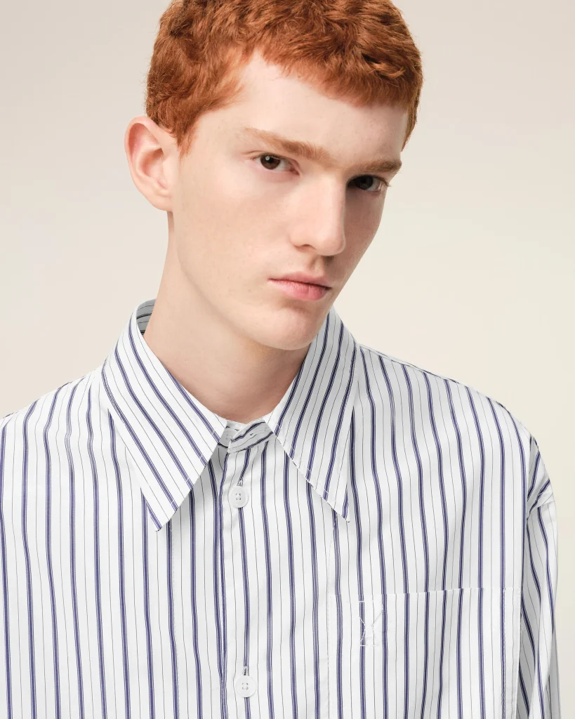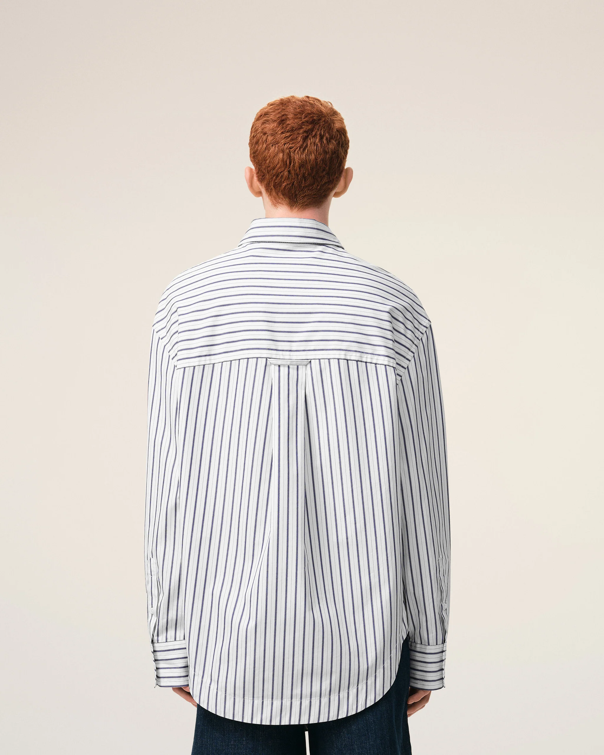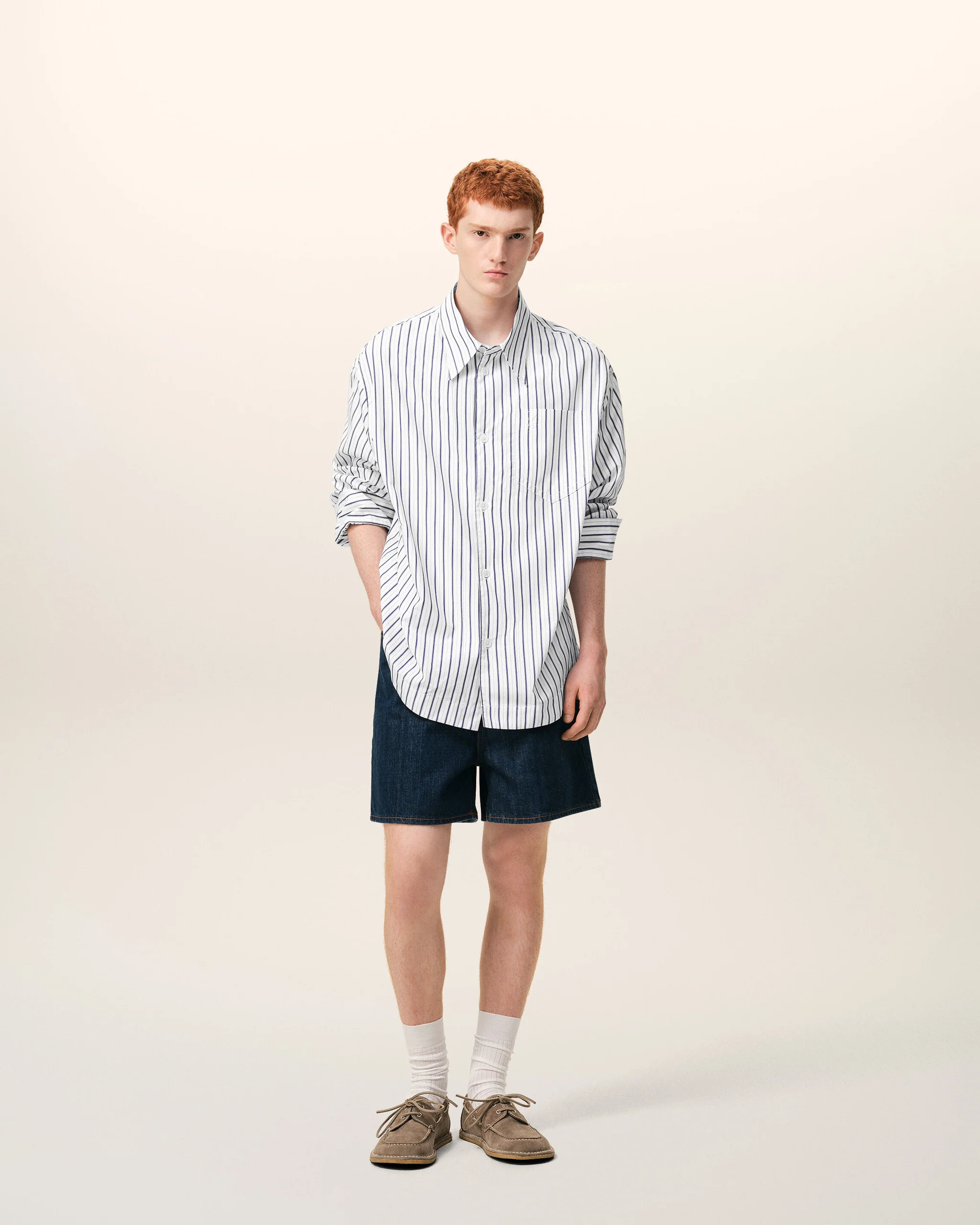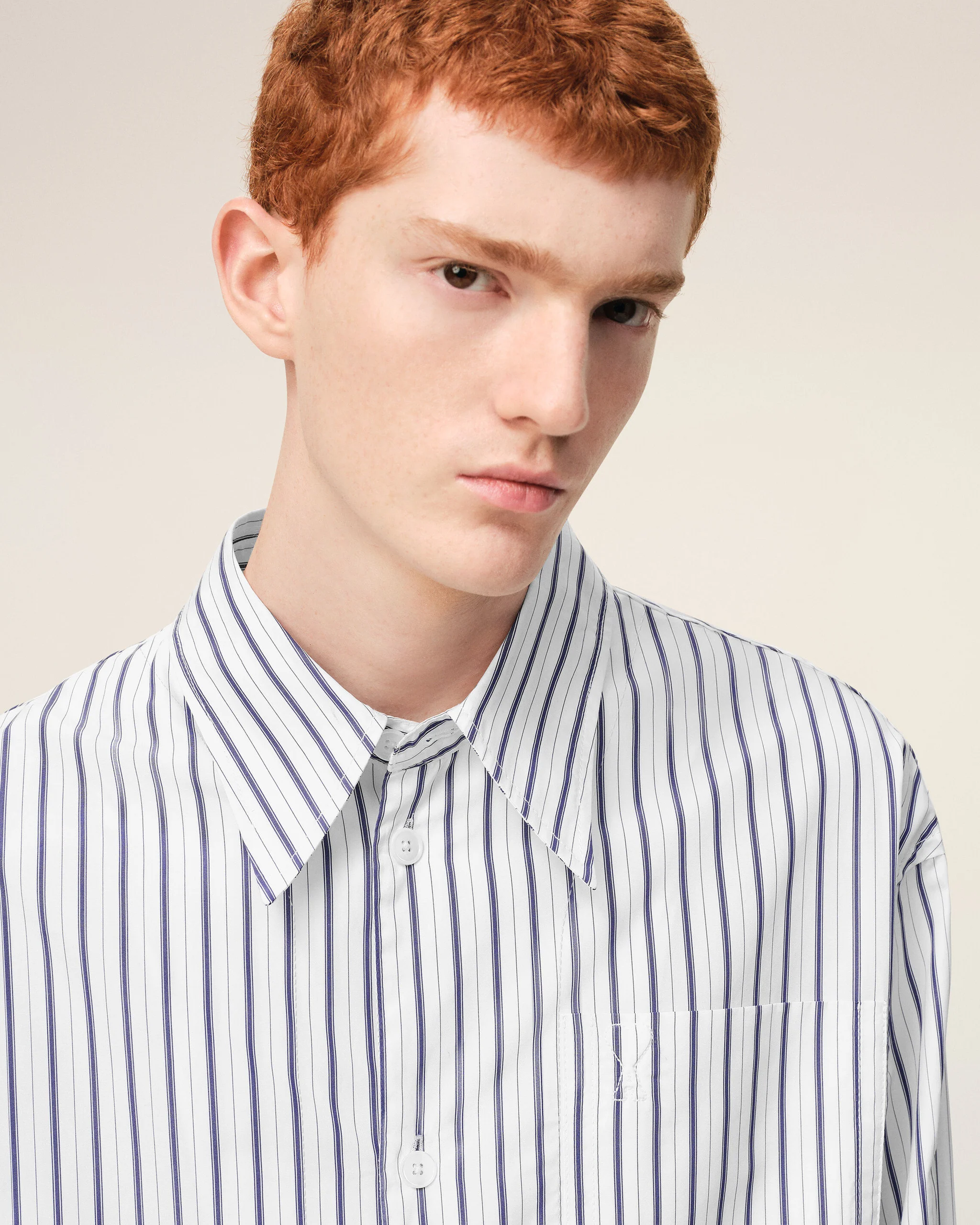 WHITE STRIPED COTTON AMI DE COEUR WIDE SHIRT