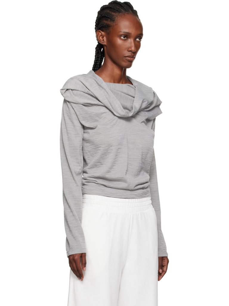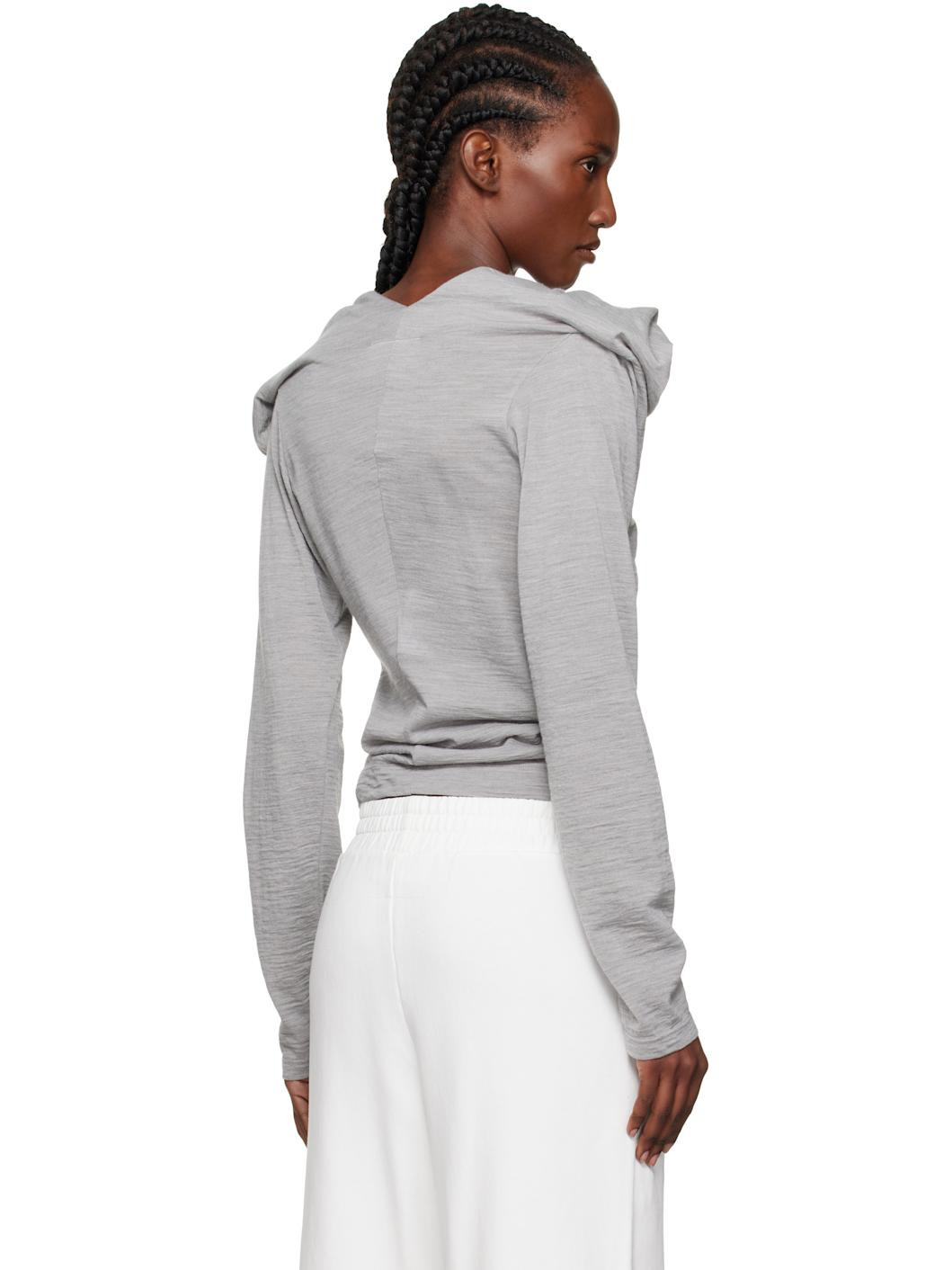 Gray Wool Jersey Long-Sleeved Top