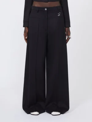 Oversized gabardine trousers – black
