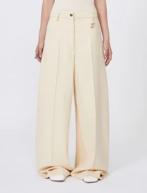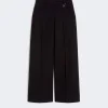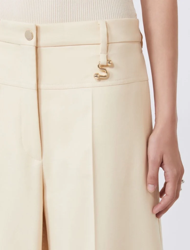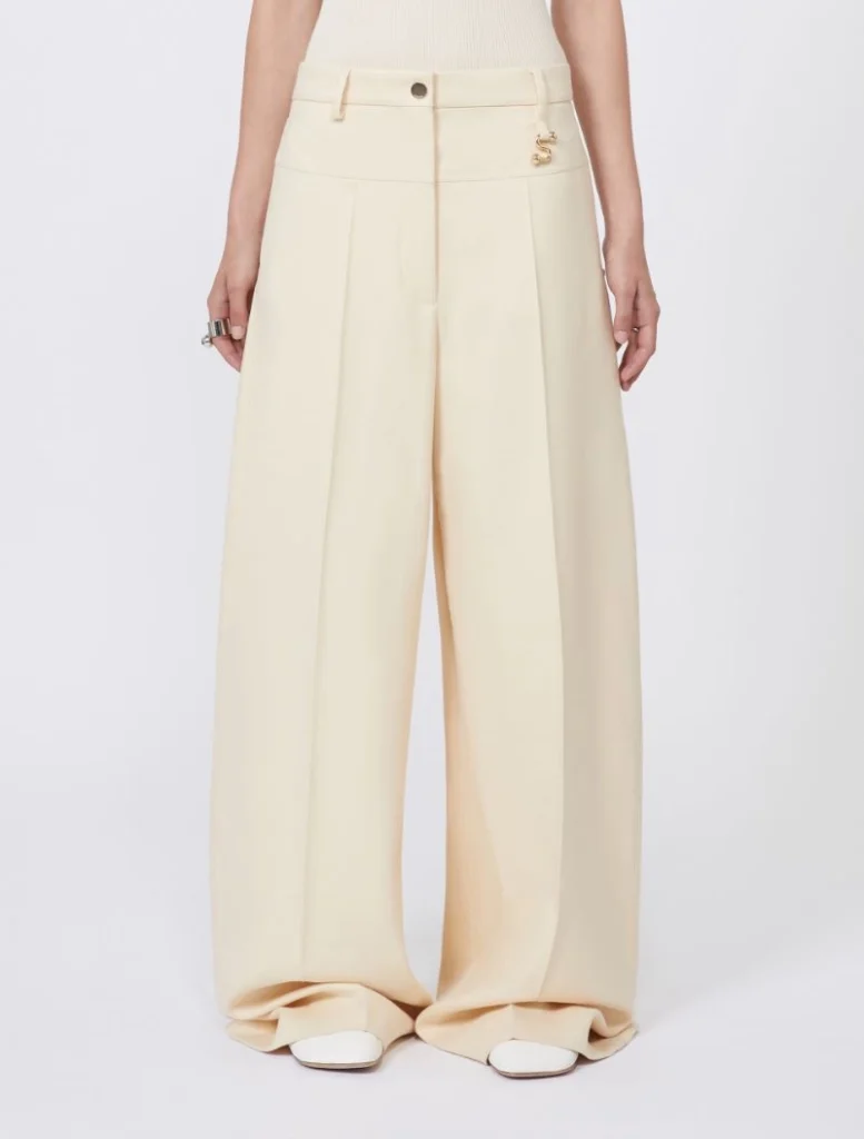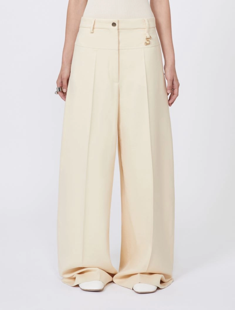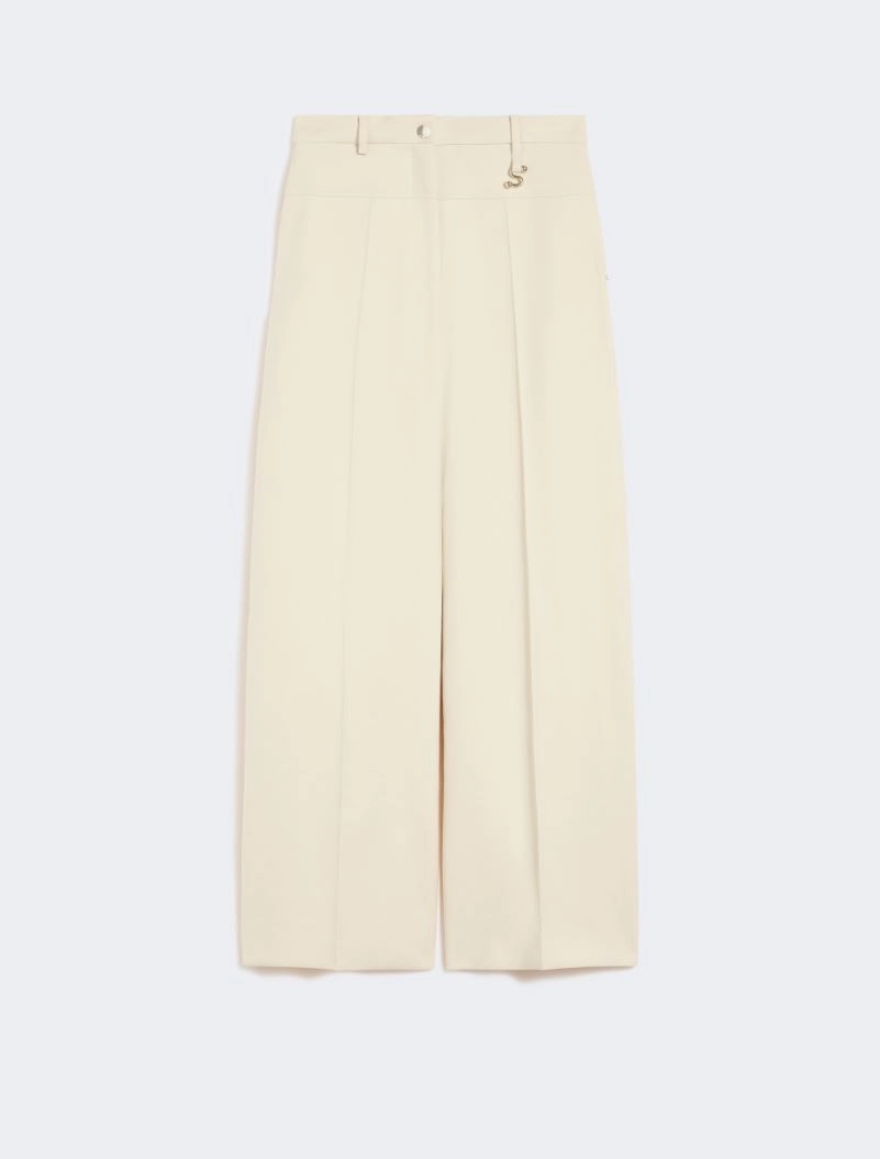 New oversized trousers in soft cotton and viscose gabardine fabric. The special design adds a casual touch, thanks to the topstitched waist yoke and patch rear pockets.
