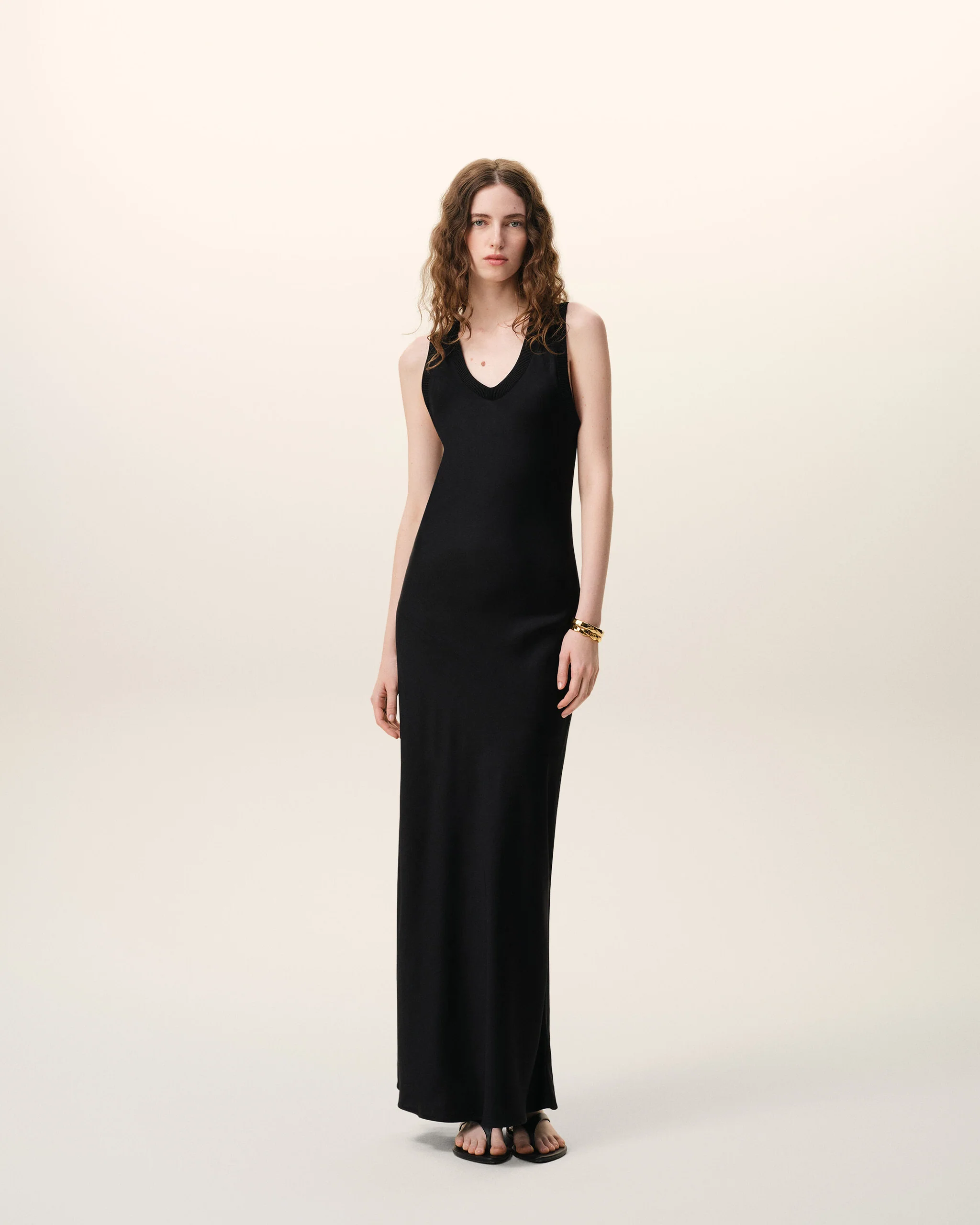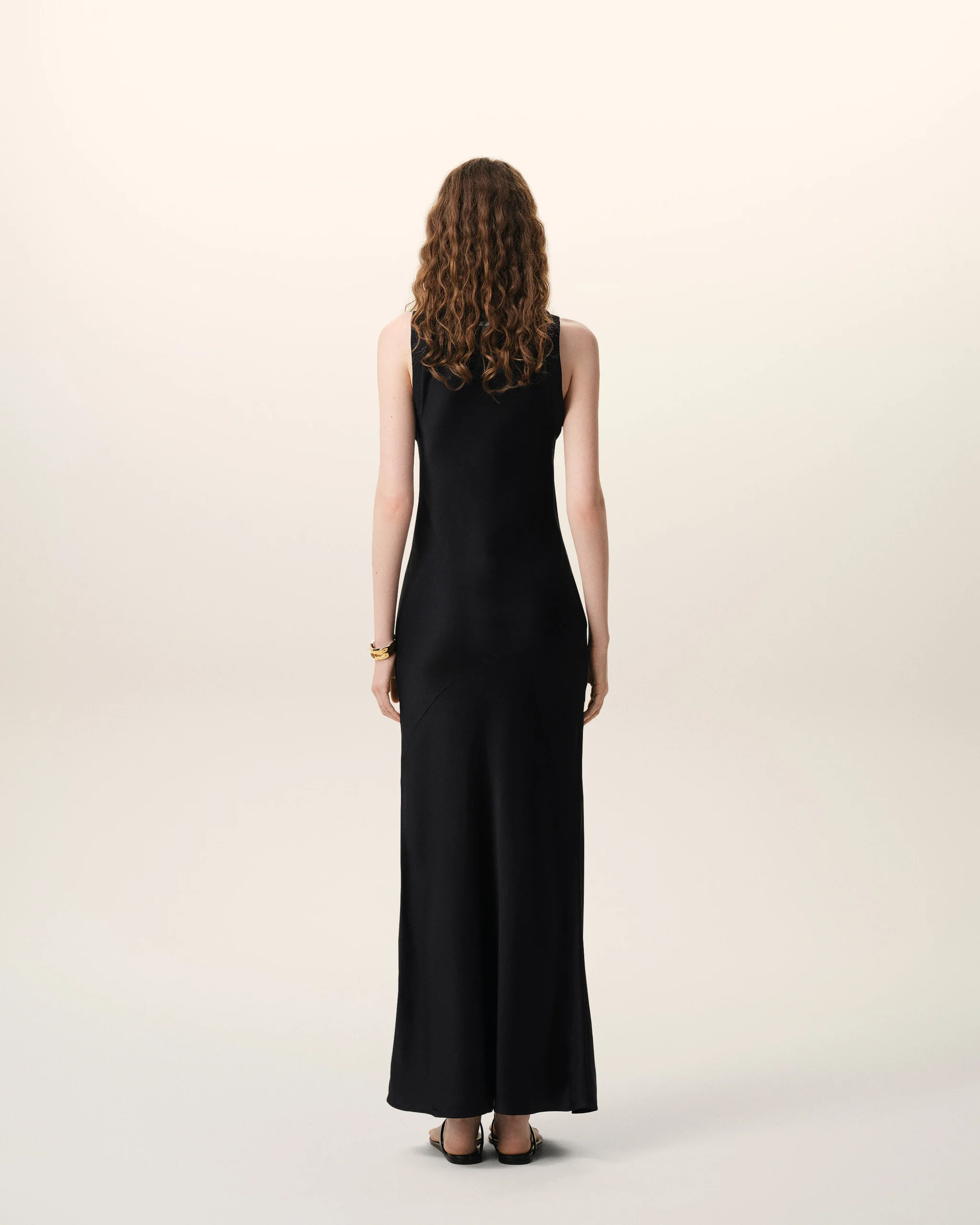 Long tank dress in fluid satin.