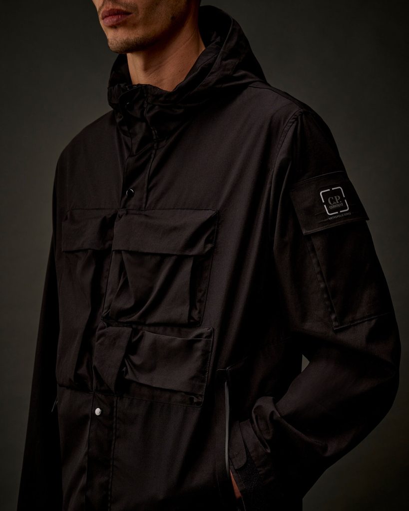 Jacket crafted from HyST (Hydro Stop Canvas), a tightly woven cotton fabric that expands when wet, enhancing its natural water-repellent properties and guaranteeing a water resistance of 442 mm. Part of the Metropolis Series collection, the model features a concealable hood with flap and snap closure, full zip fastening with snap flap closure, and front flap Velcro pockets. Additional details include a sleeve Velcro pocket with a lasered logo badge, side zip pockets, and back flap Velcro pockets. Finished with adjustable Velcro cuffs and an adjustable drawstring hem. Regular fit.