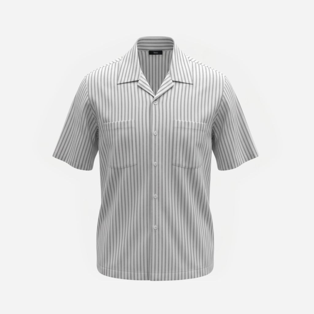 MELANGE STRIPED COTTON SHORT-SLEEVE CAMP SHIRT