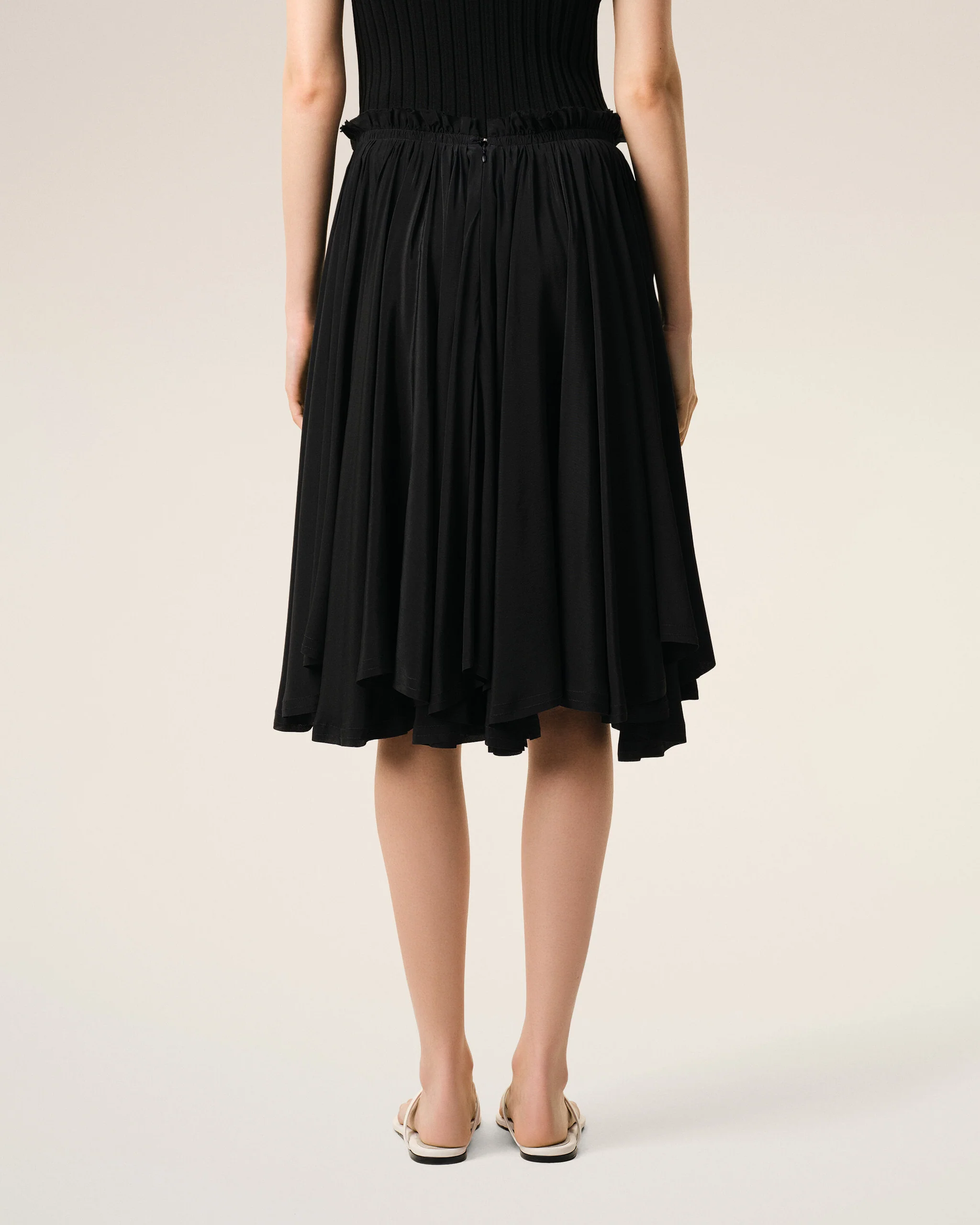 Corolla midi skirt in blended silk crepe de Chine.