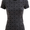 Black ribbed cotton jersey T-shirt featuring a crew neck, short sleeves, and a straight hem. The design is completed by an embroidered logo on the chest and a logo label on the back.