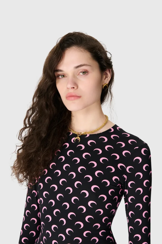 MOON PRINTED JERSEY LS CREWNECK TOP