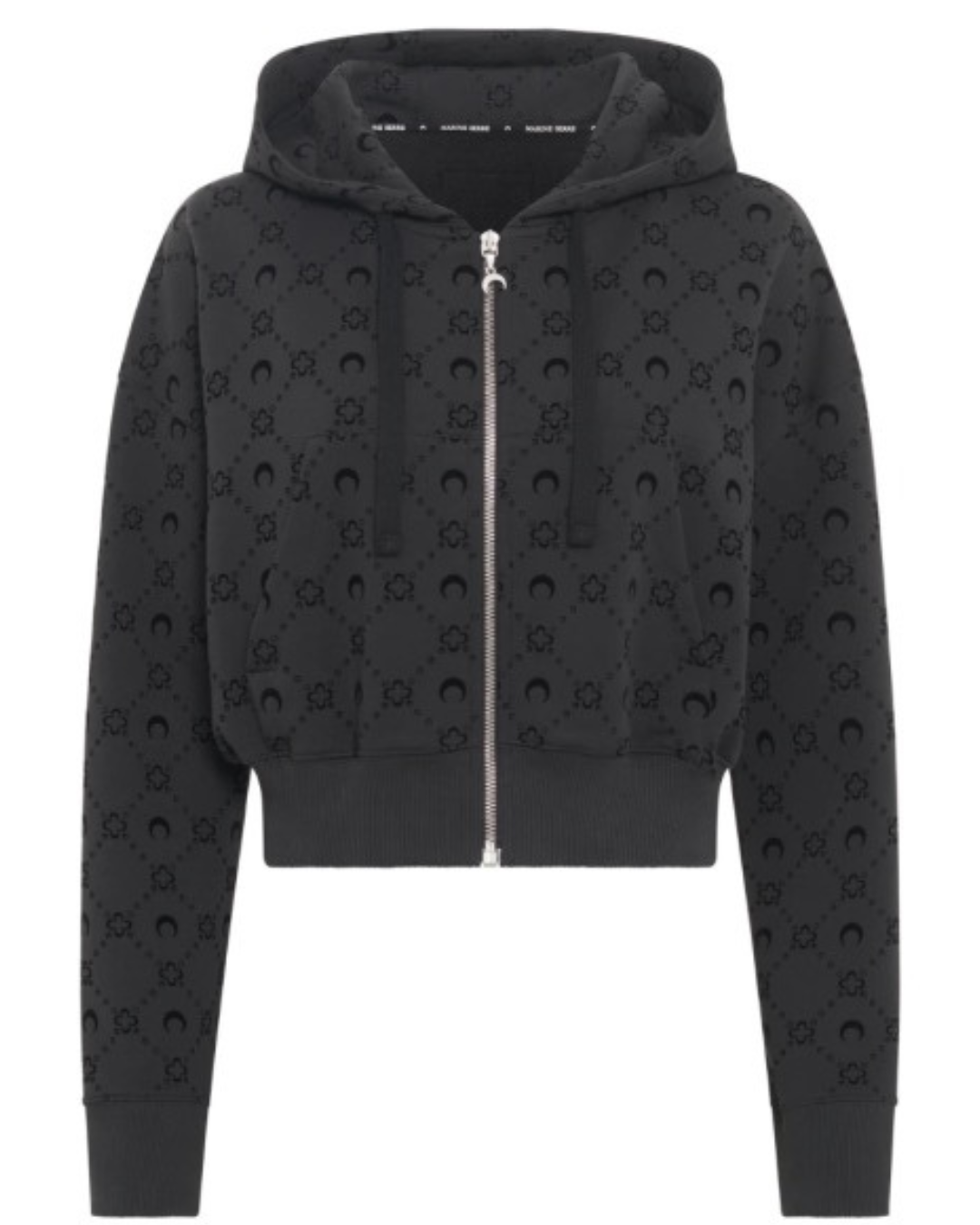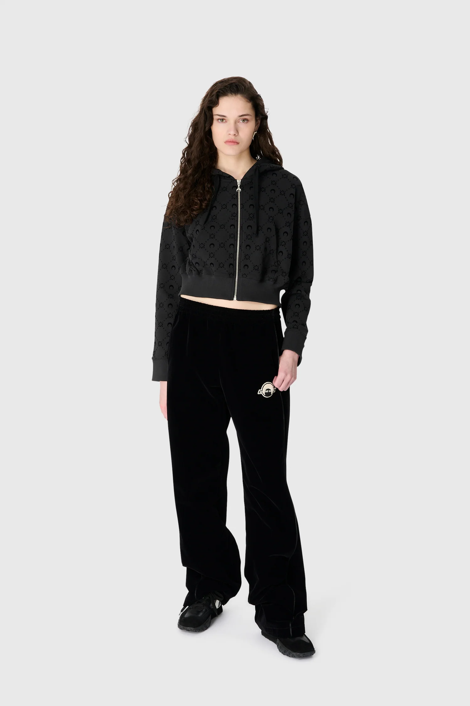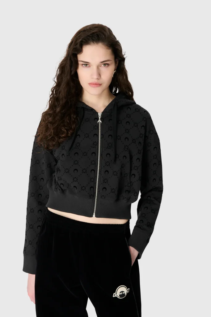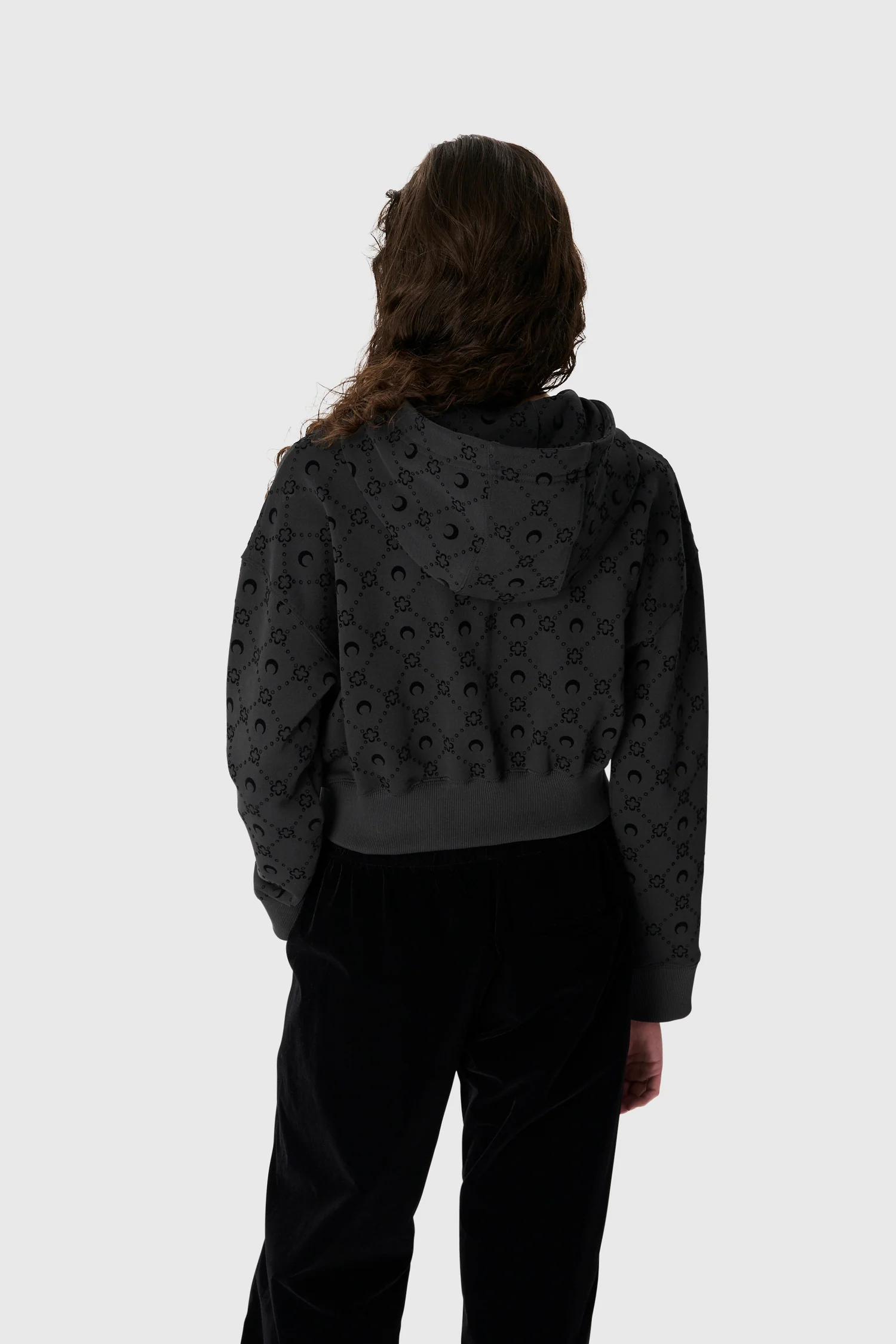 MOONOGRAM FLOCKED FLEECE CROPPED ZIPPED HOODIE