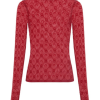 MOONOGRAM MESH FLOCK LS HIGHNECK TOP