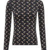 MOONOGRAM MESH FLOCK LS HIGHNECK TOP