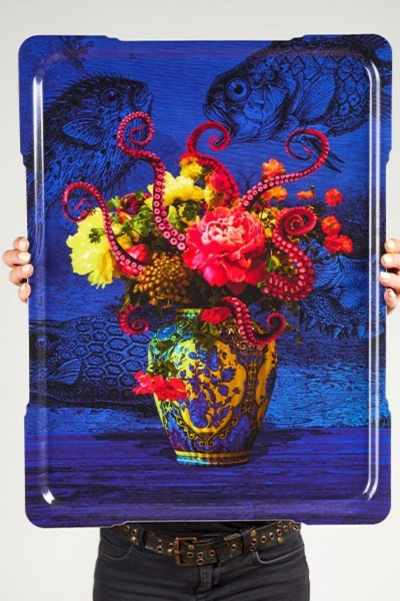 Is it a serving tray or a piece or art? However you choose to use it, it is certainly ‘inkredible’. This Octoming Rectangular Tray features an underwater world design of a red octopus amongst a vase full of flower blooms, it will add instant colour and whimsy into your home.