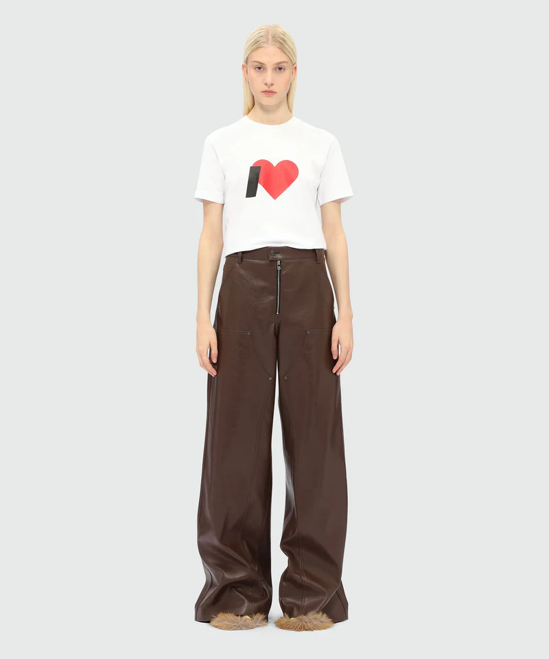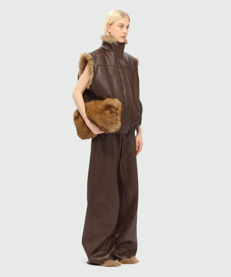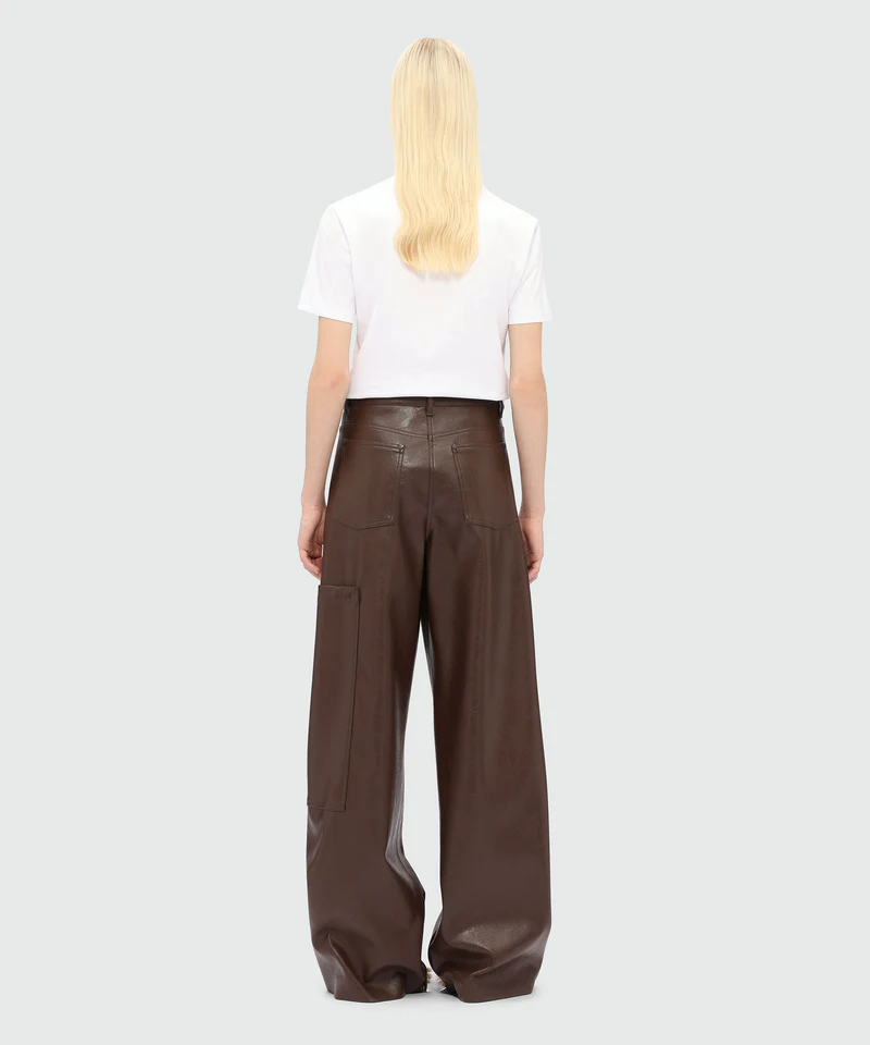 Dark brown hammered faux leather trousers