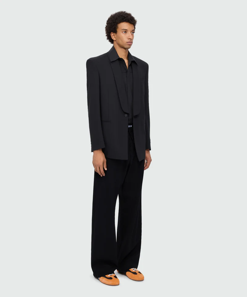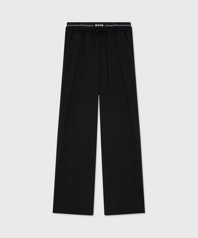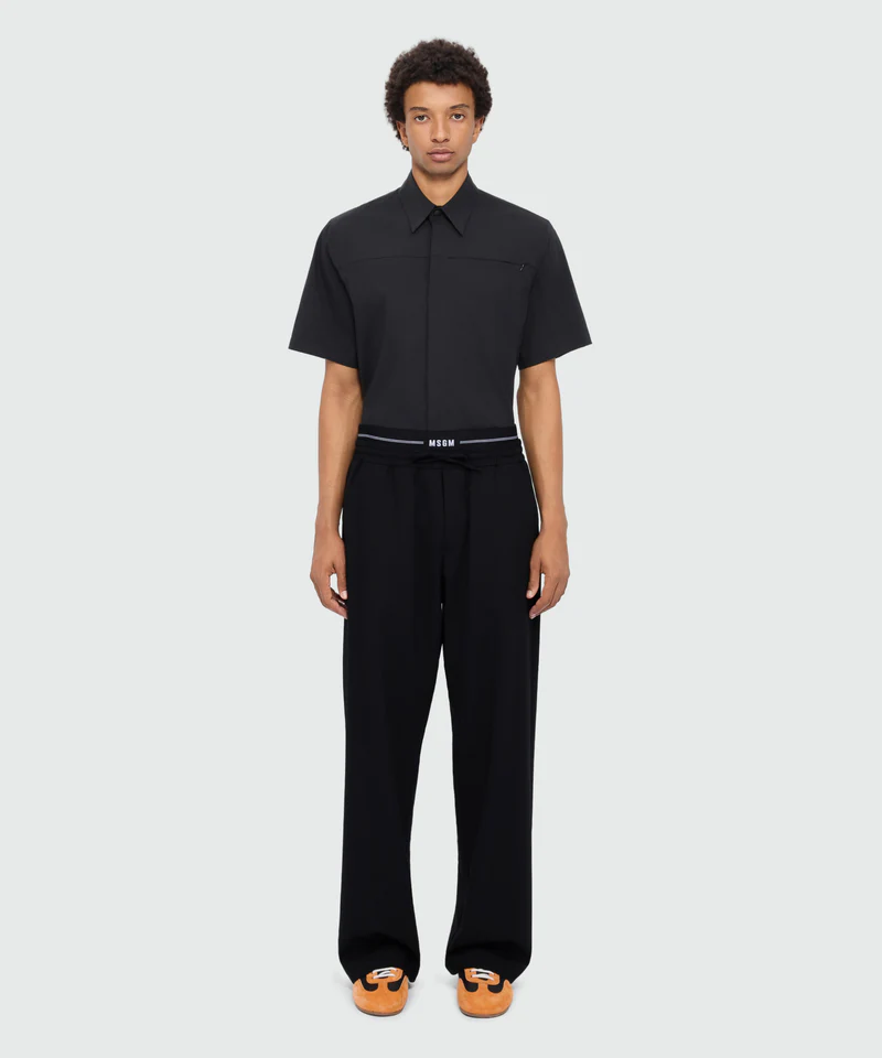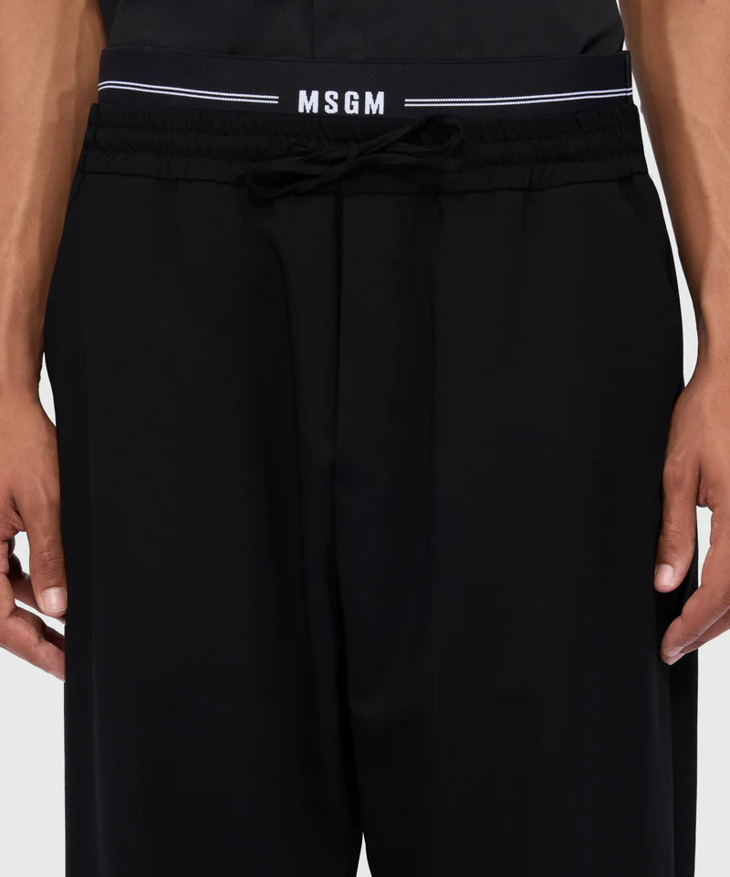 Black wool trousers with logo elasticated waistband
