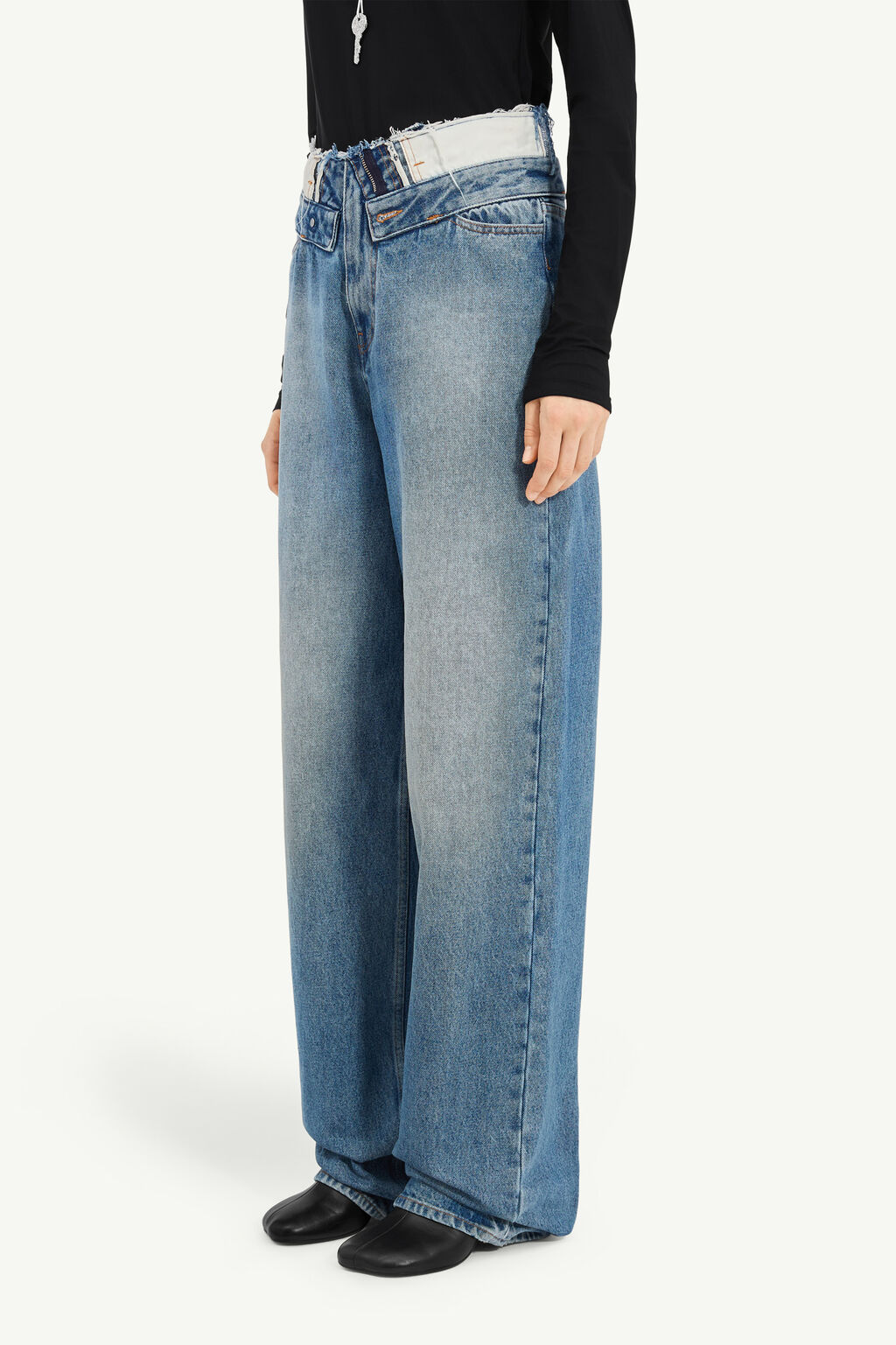 Distressed double waistband detail