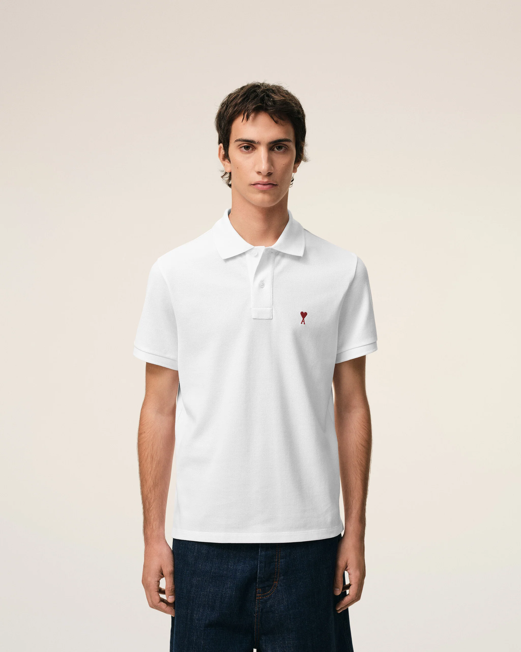 WHITE COTTON RED AMI DE COEUR POLO SHIRT