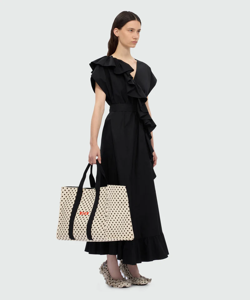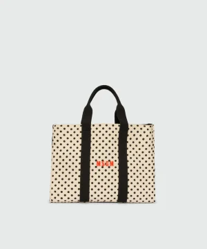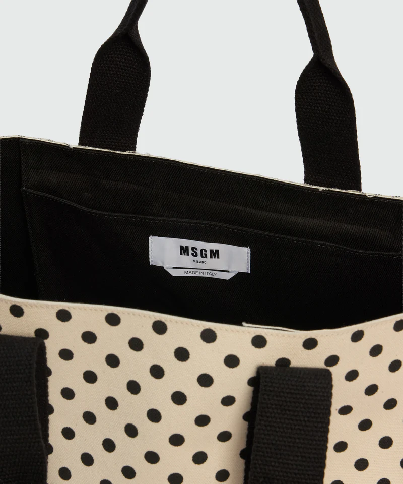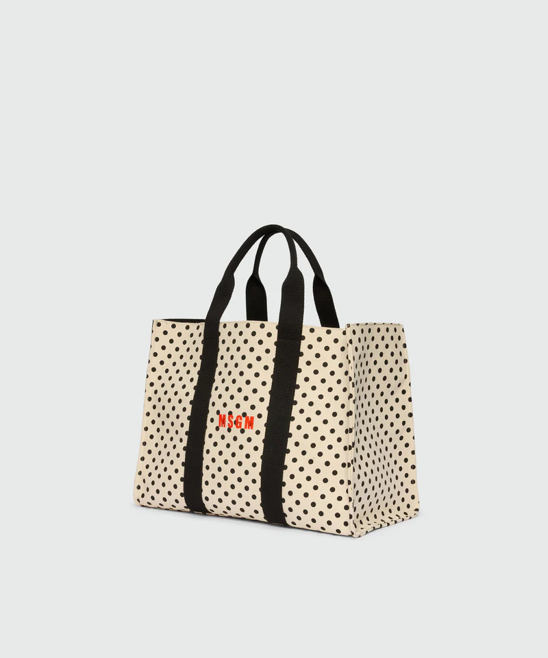 Horizontal-format canvas tote with polka dot print. Contrast grosgrain handles. Contrast MSGM logo on the front. One size.