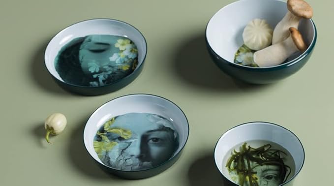 Ibride Design Qing River Vert Stackable plates and salad bowls set in melamine