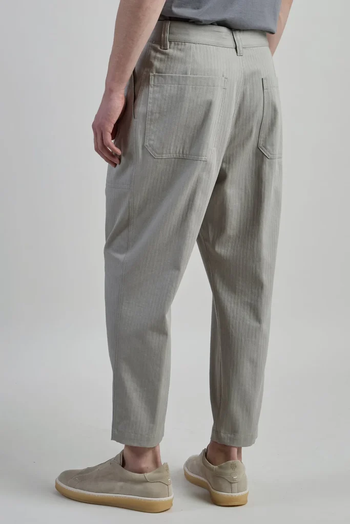 Military-inspired aesthetics meet the natural breathability of pure cotton in these fatigue trousers designed for a modern, functional look. The relaxed fit silhouette ensures all-day comfort, while the inclusion of front pleats provides a sophisticated sartorial edge. These men’s trousers feature spacious patch pockets and sporty details that enhance their utilitarian character. Crafted with precision, the Italian-made construction highlights the durable yet soft texture of the fabric. A versatile choice for the warmer months, this model offers a contemporary take on casual pants, blending heritage workwear elements with a refined finish suitable for various daily occasions.