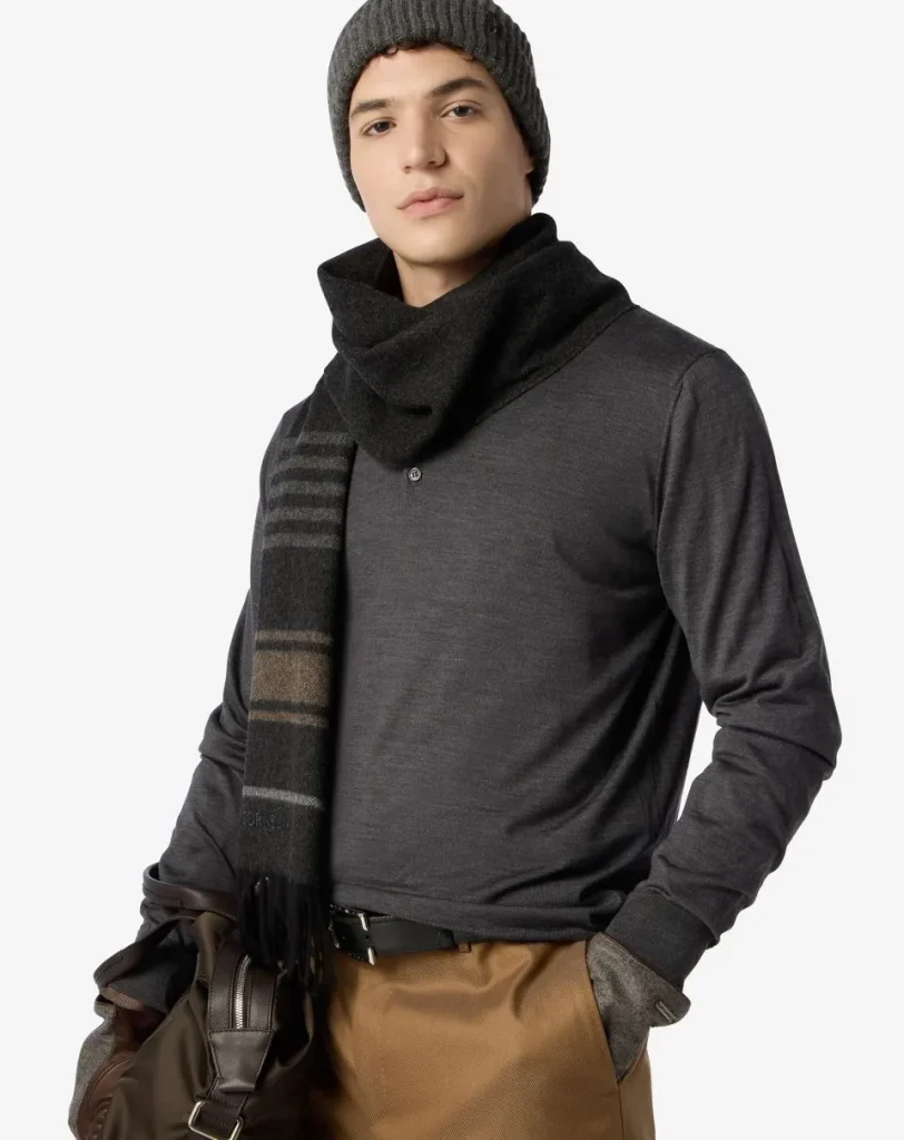 Grey/brown wool and cashmere scarf