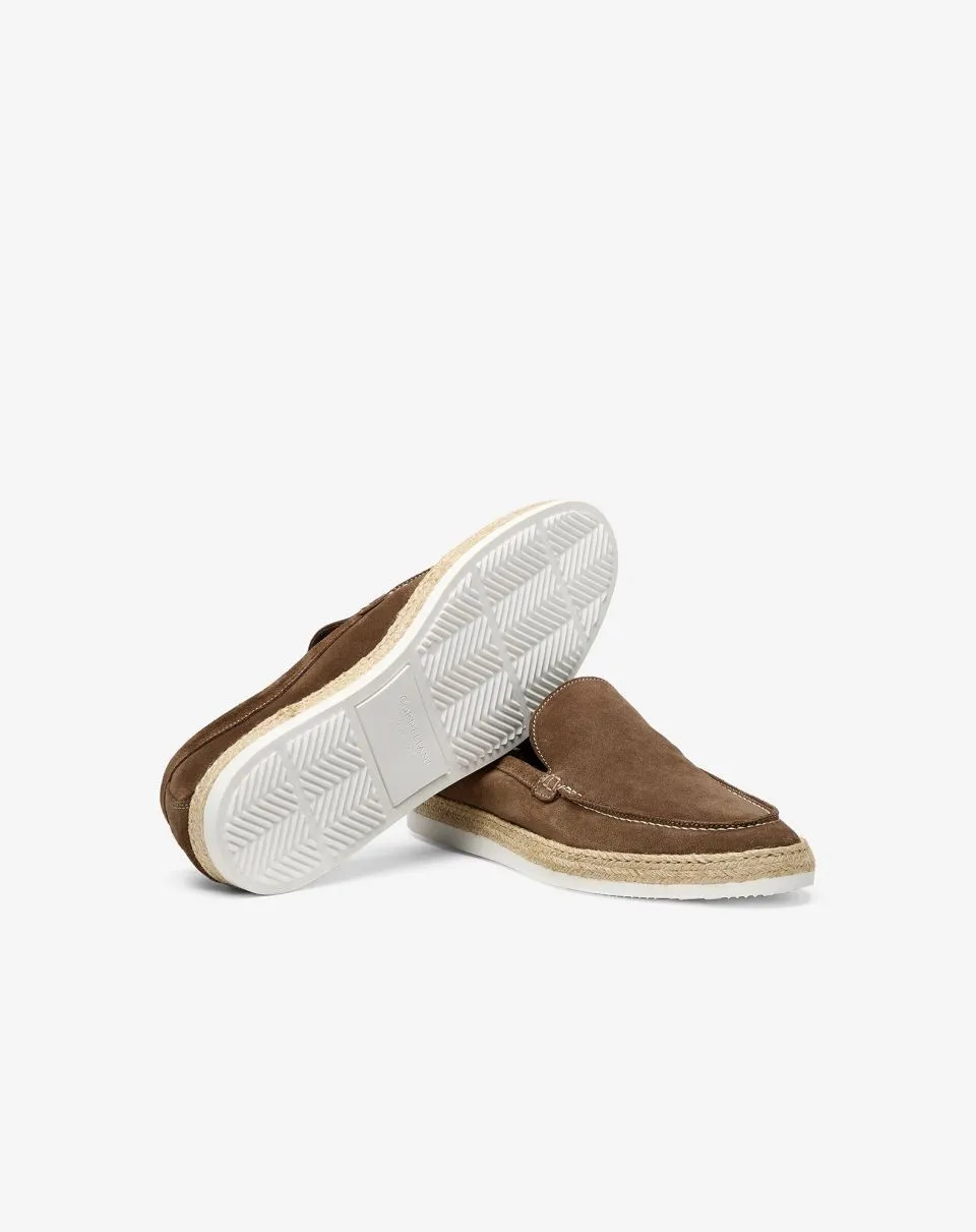 With their rubber and rope sole, these brown suede slip-on loafers offer ideal comfort and lightness for the summer season. A perfect solution to complete relaxed yet smart looks, interpreting the Corneliani style with casual elegance, step by step.
