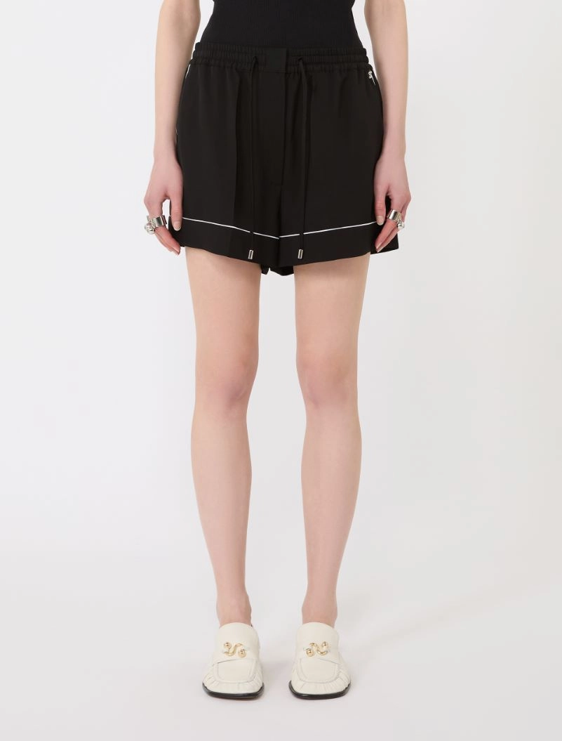 Jogger shorts crafted from washed viscose satin fabric. The active details, such as the elasticated waistband and drawstring waist, combine with tailored touches, like the contrasting piping and mannish-style pockets.