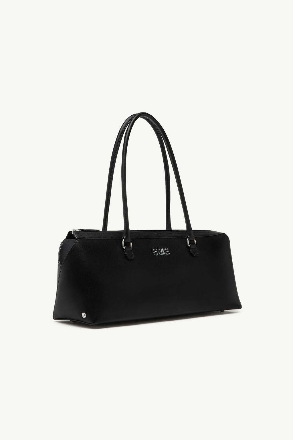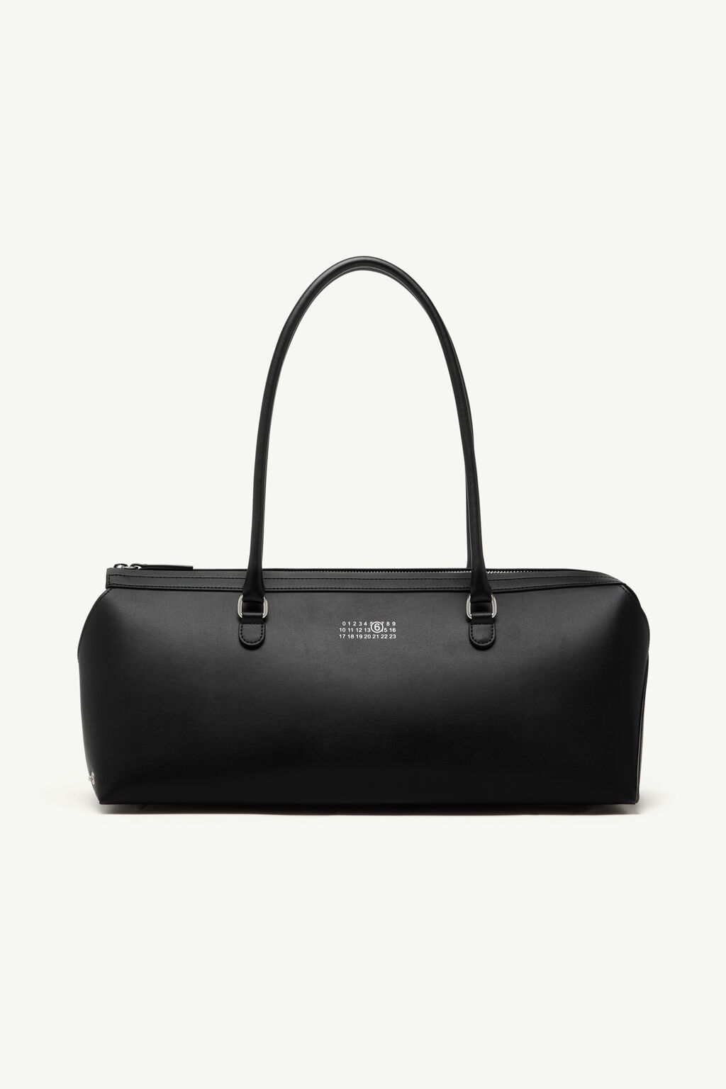 Rooted in the familiar shape of a bowling bag, this leather shoulder style refines the form through reduction. The elongated body and slim handles emphasise its defined profile, with the numeric artwork printed at the front as a subtle point of identity within an otherwise minimal design.