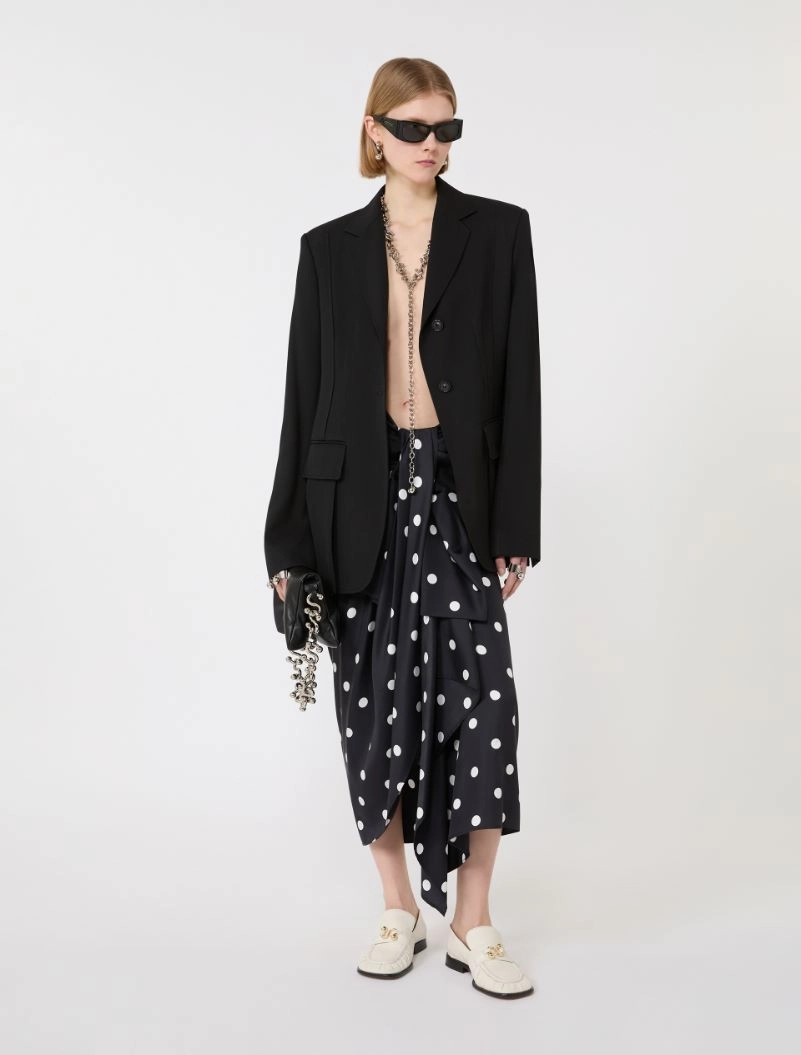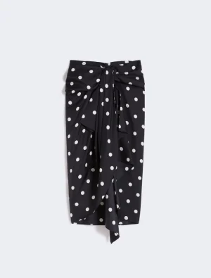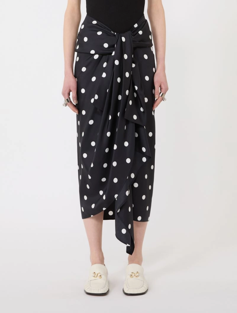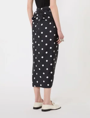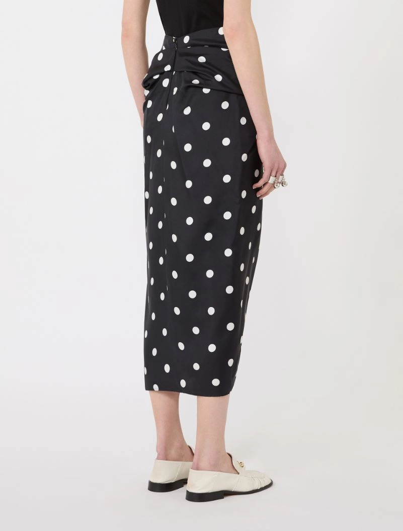 Polka dot-print silk twill skirt